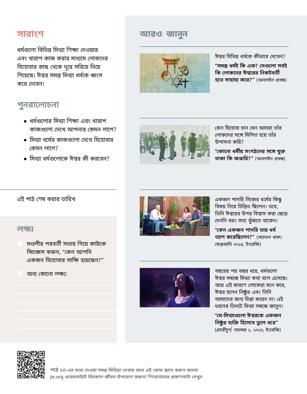 “সমস্ত ধর্মই কি এক? সেগুলো সবই কি লোকদের ঈশ্বরের নিকটবর্তী হতে সাহায্য করে?” (অনলাইন প্রবন্ধ)