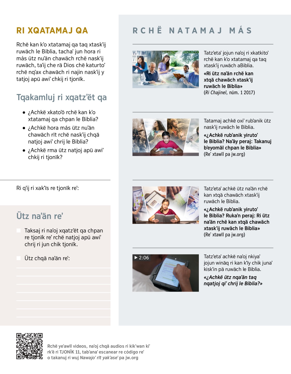 «Ri ütz naʼän rchë kan xtqä chawäch xtaskʼij ruwäch le Biblia» (Ri Chajinel, núm. 1 2017)