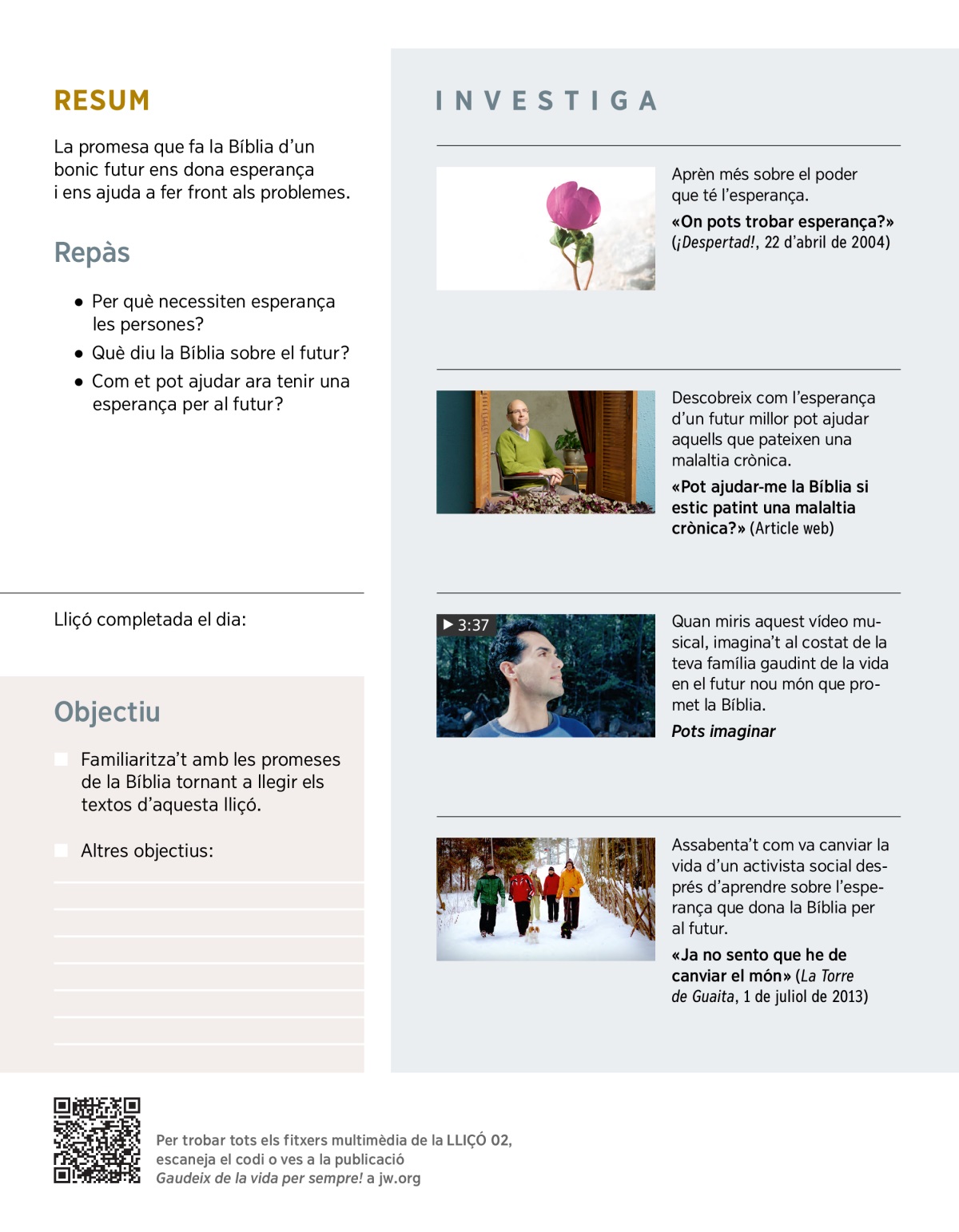 La promesa que fa la Bíblia d’un bonic futur ens dona esperança i ens ajuda a fer front als problemes.