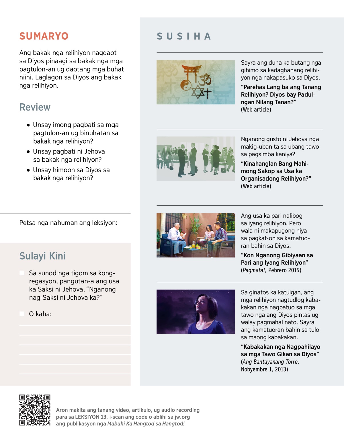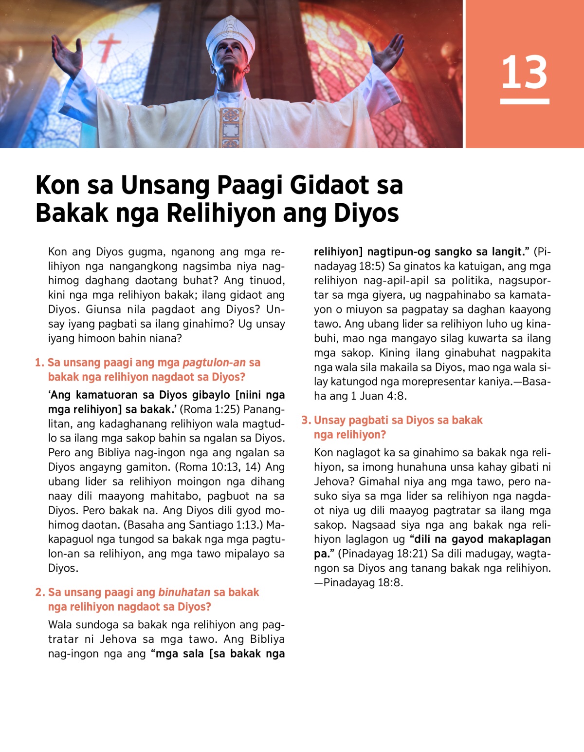 Tun-ig dugang kon unsay pagbati sa Diyos sa bakak nga relihiyon. Sayra kon unsa pay ginahimo niini, pero sayra pod kon nganong dili ni angayng magpugong nimo nga mailhan si Jehova.