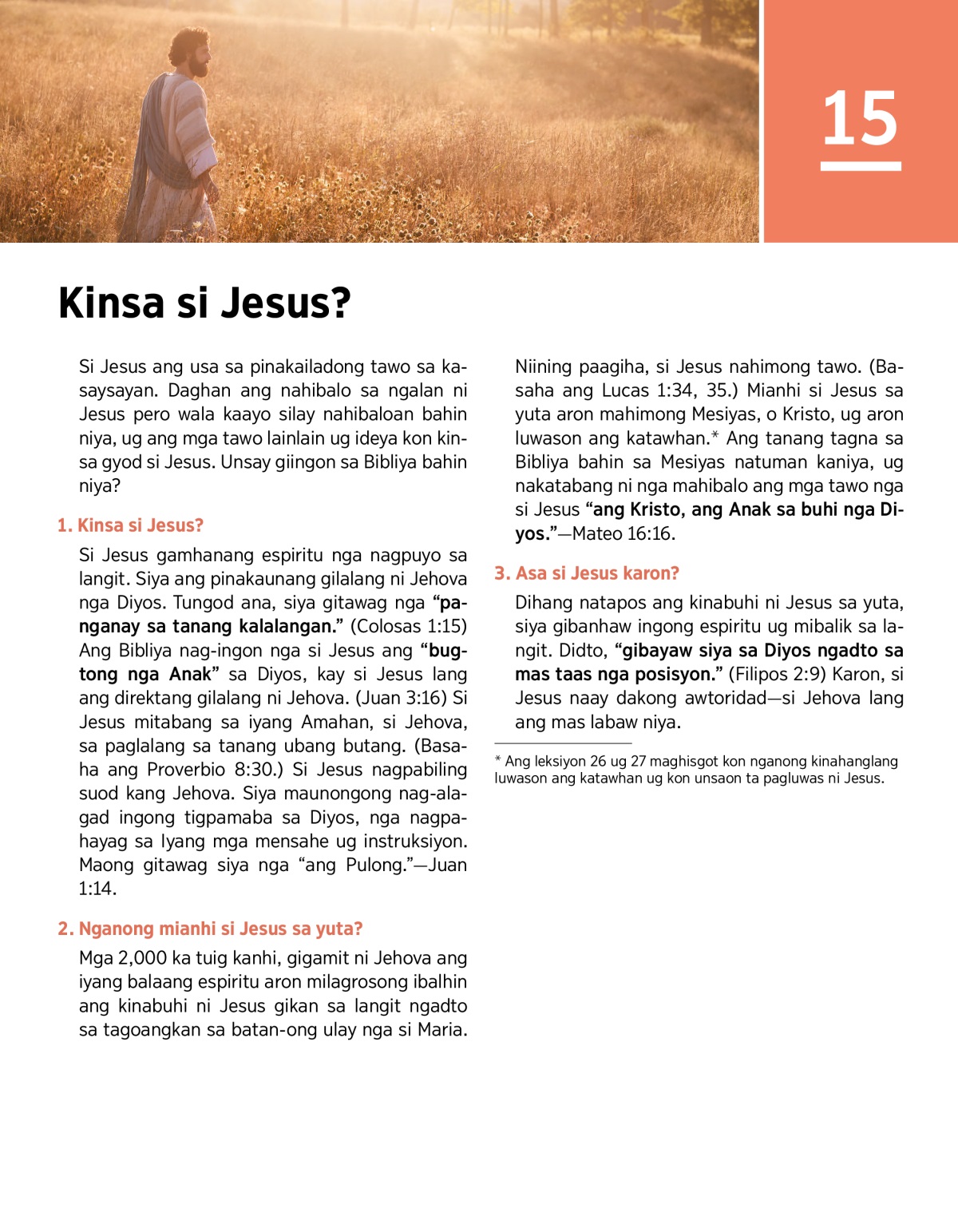 a Ang leksiyon 26 ug 27 maghisgot kon nganong kinahanglang luwason ang katawhan ug kon unsaon ta pagluwas ni Jesus.