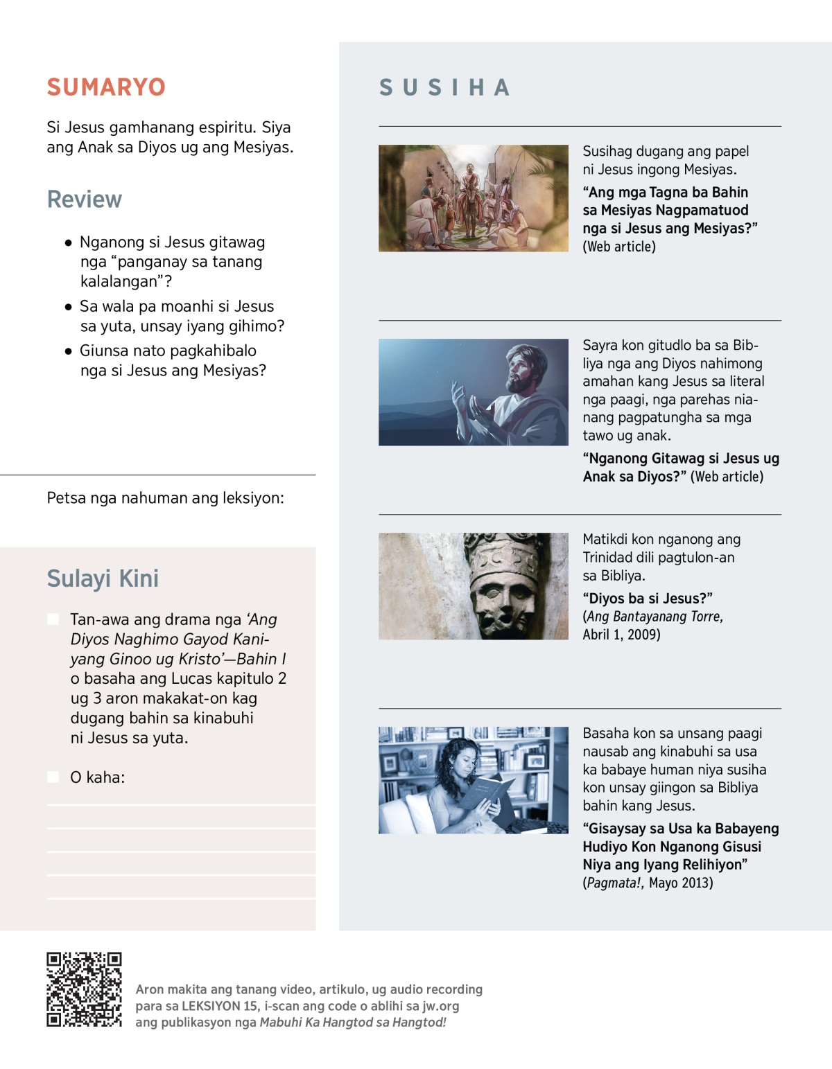 Sayrag dugang kon kinsa gyod si Jesus ug kon nganong importante kaayo nga mokat-on ta bahin niya.