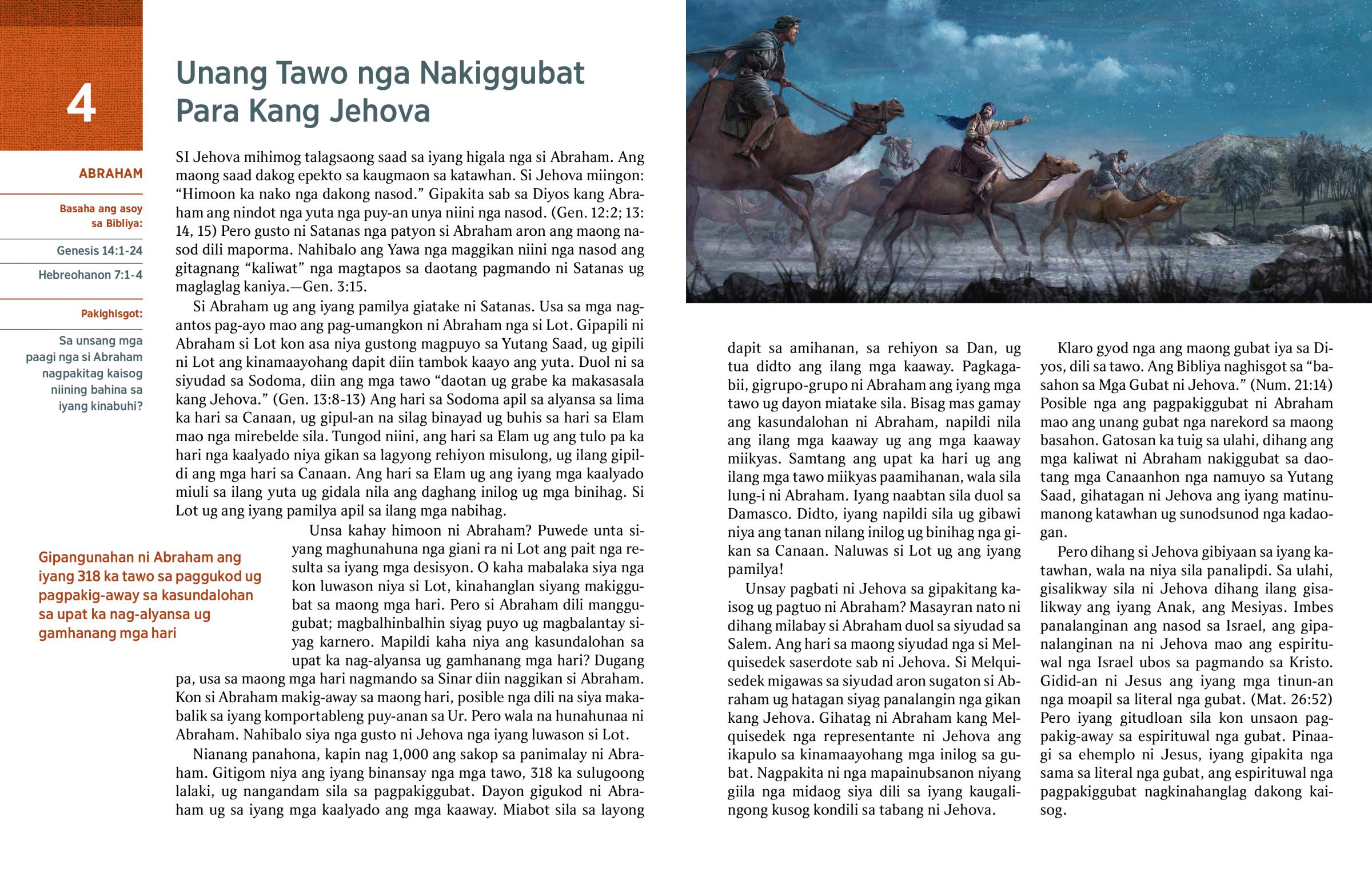 Klaro gyod nga ang maong gubat iya sa Diyos, dili sa tawo. Ang Bibliya naghisgot sa “basahon sa Mga Gubat ni Jehova.” (Num. 21:14) Posible nga ang pagpakiggubat ni Abraham mao ang unang gubat nga narekord sa maong basahon. Gatosan ka tuig sa ulahi, dihang ang mga kaliwat ni Abraham nakiggubat sa daotang mga Canaanhon nga namuyo sa Yutang Saad, gihatagan ni Jehova ang iyang matinumanong katawhan ug sunodsunod nga kadaogan.