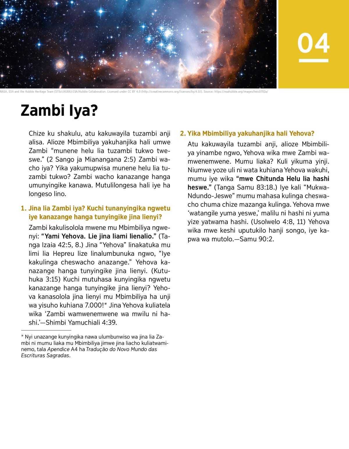 1. Jina lia Zambi iya? Kuchi tunanyingika ngwetu iye kanazange hanga tunyingike jina lienyi?