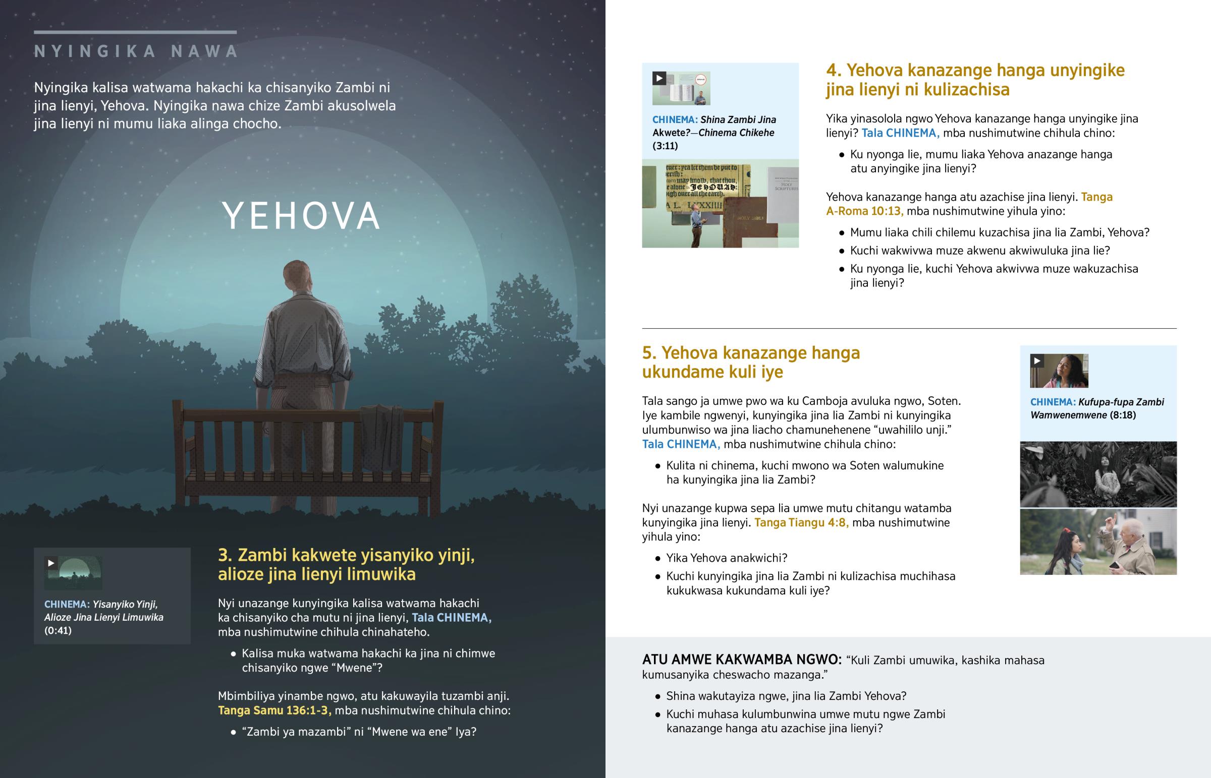 Yika yinasolola ngwo Yehova kanazange hanga unyingike jina lienyi? Tala CHINEMA, mba nushimutwine chihula chino: