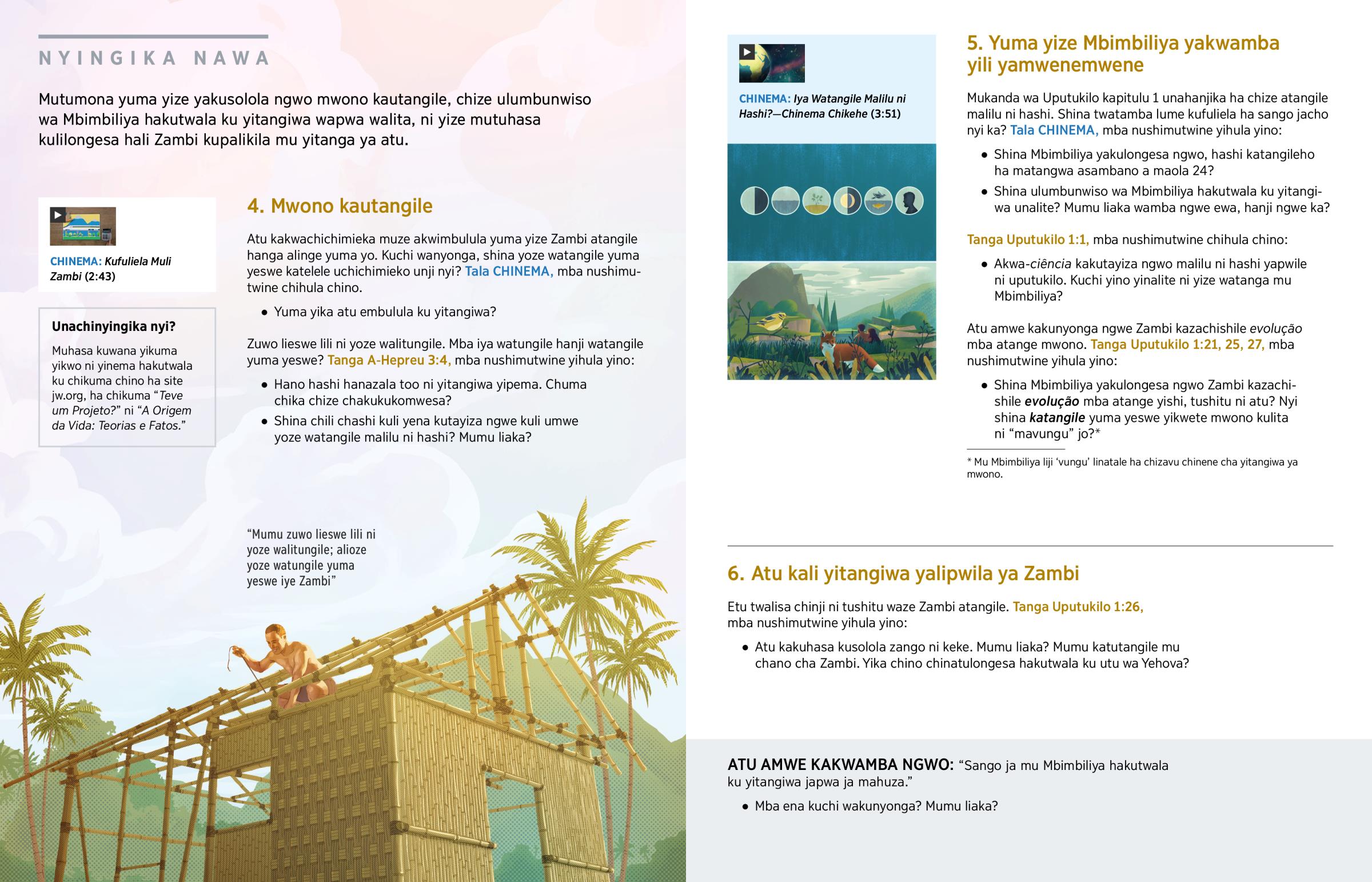 Atu kakwachichimieka muze akwimbulula yuma yize Zambi atangile hanga alinge yuma yo. Kuchi wanyonga, shina yoze watangile yuma yeswe katelele uchichimieko unji nyi? Tala CHINEMA, mba nushimutwine chihula chino.