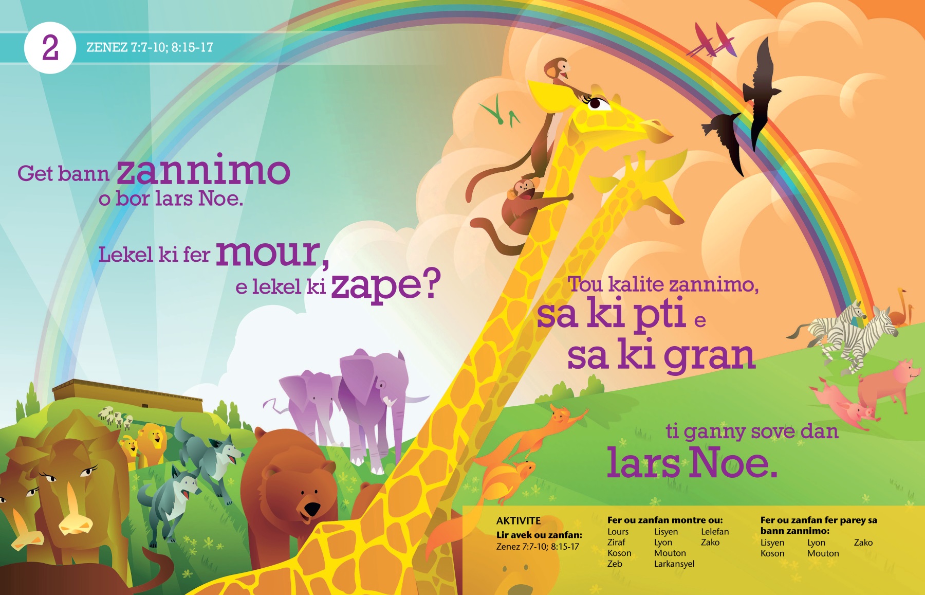 Tou kalite zannimo, sa ki pti e sa ki gran ti ganny sove dan lars Noe.