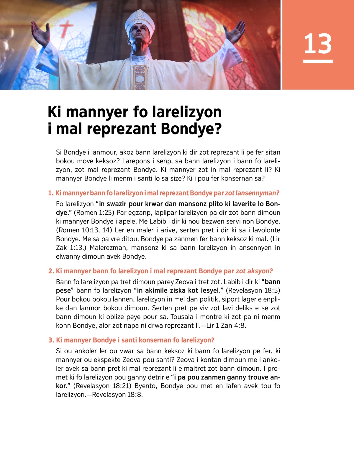 1. Ki mannyer bann fo larelizyon i mal reprezant Bondye par zot lansennyman?