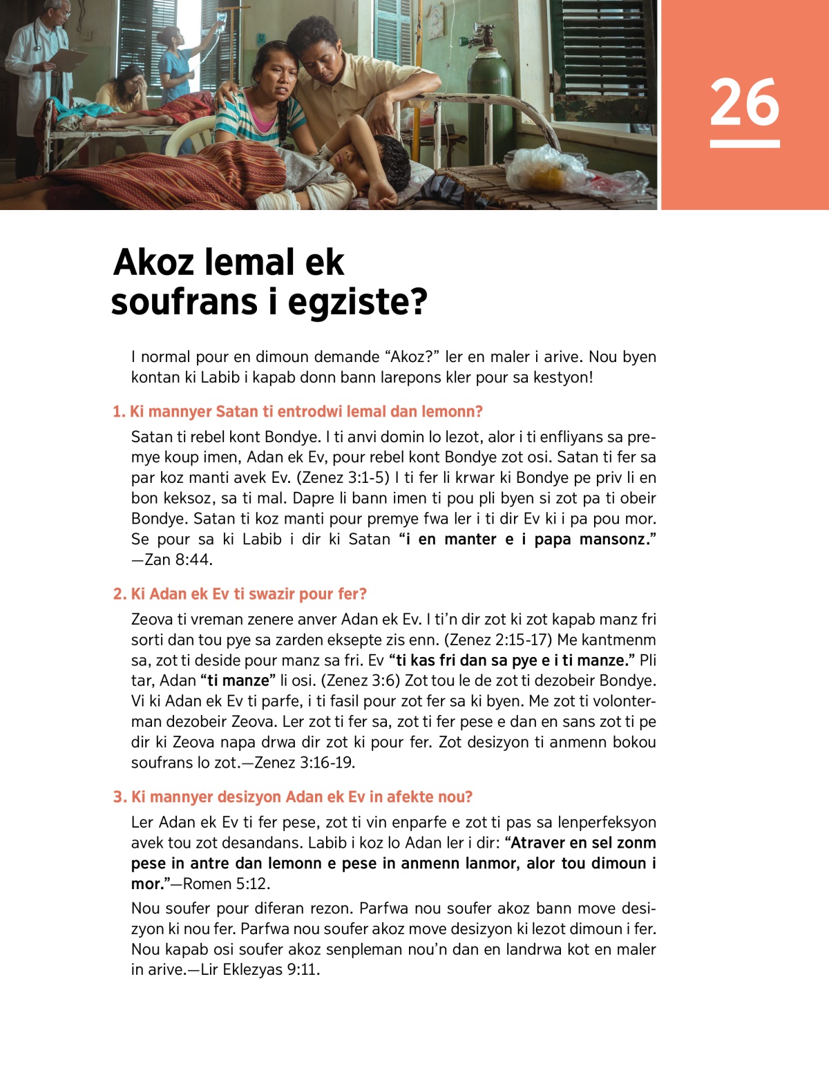 Satan ek sa premye koup imen ki prensipalman responsab pour lemal dan lemonn. Zeova i santi nou douler ler nou soufer e tre byento i pou fer nou aret soufer.