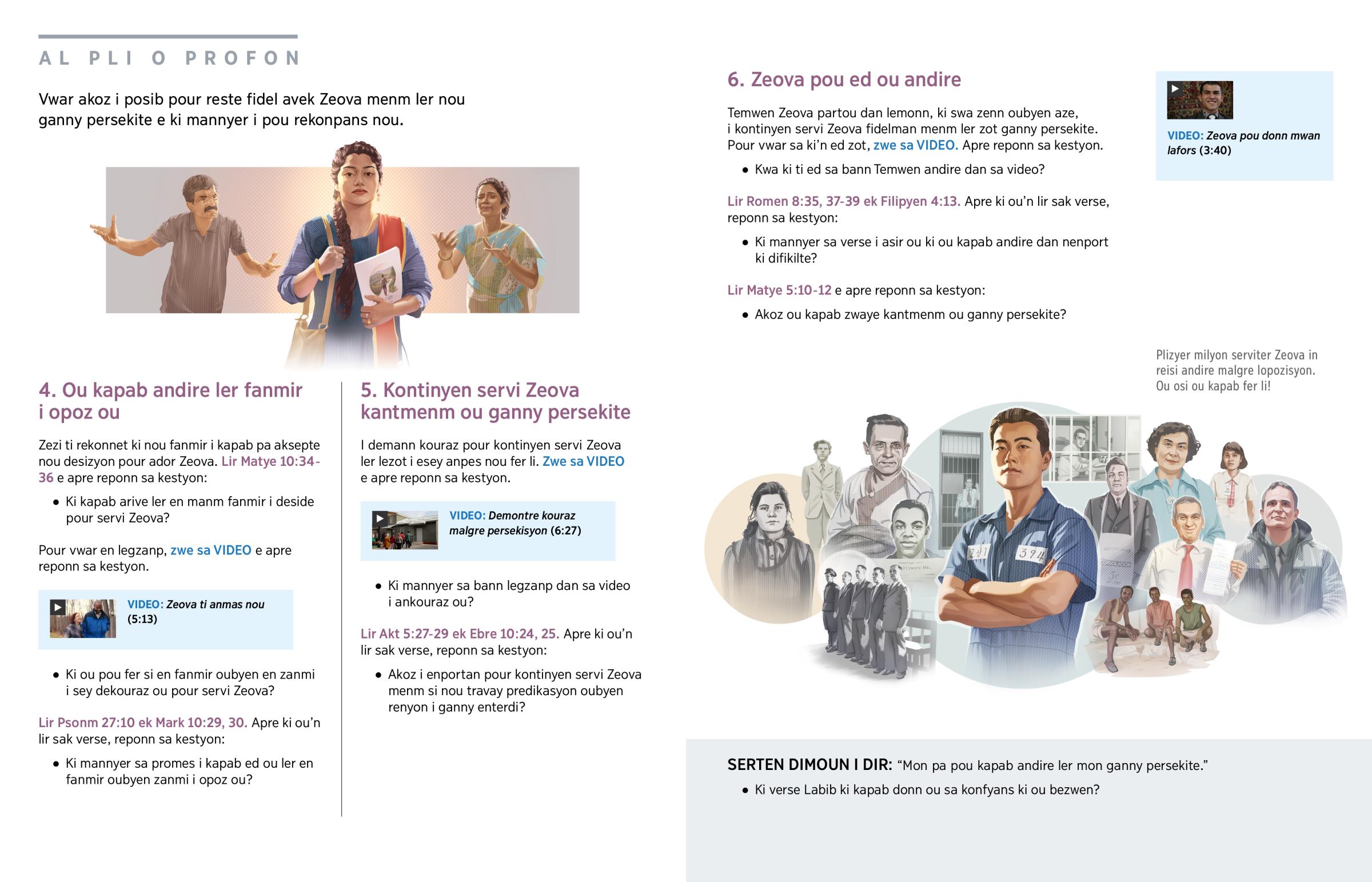 Nou zefor pour servi Zeova malgre nou ganny persekite i annan en gran valer dan son lizye. Avek son led, nou pou reisi andire!