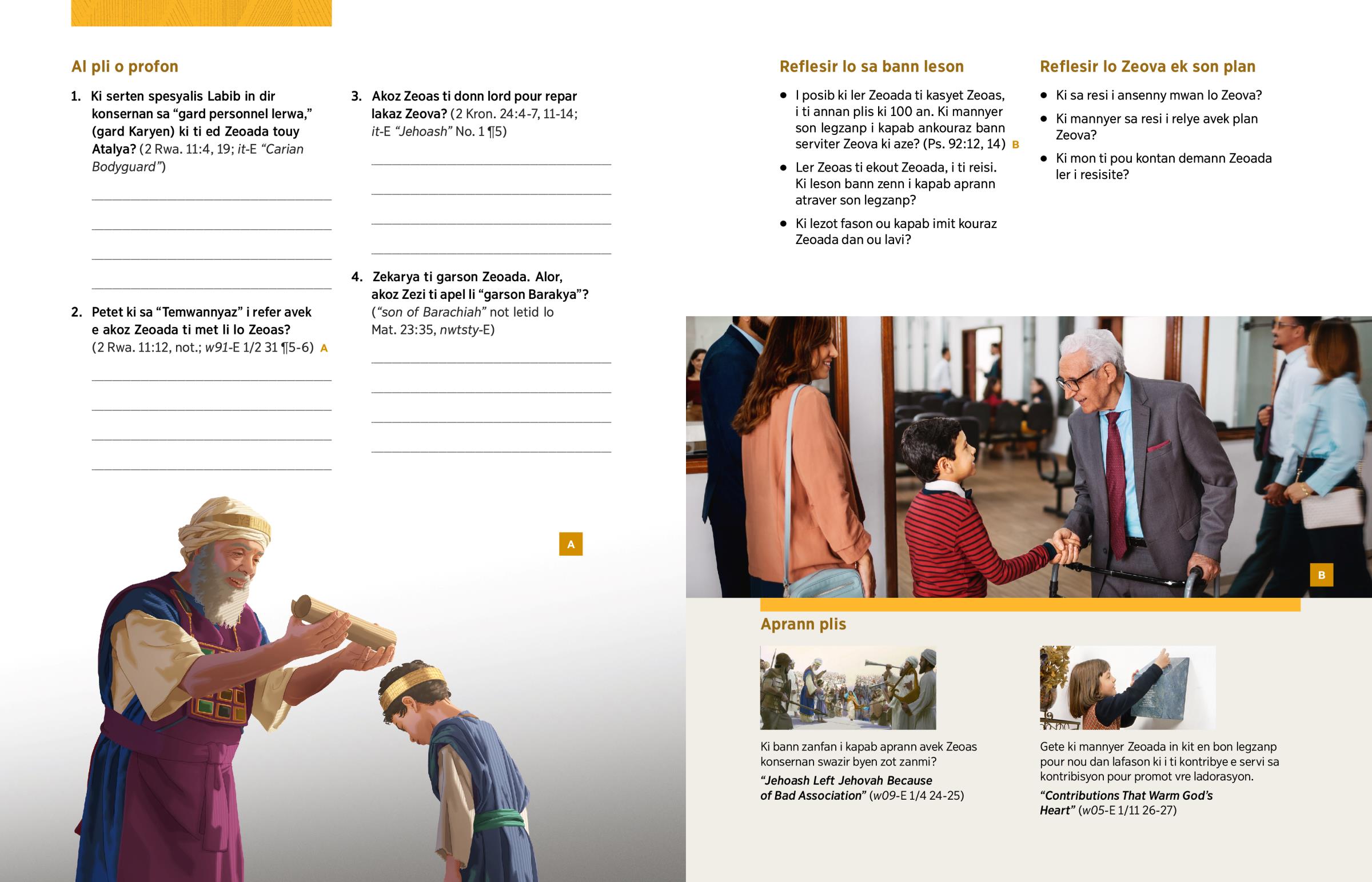 3. Akoz Zeoas ti donn lord pour repar lakaz Zeova? (2 Kron. 24:4-7, 11-14; it-E “Jehoash” No. 1 ¶5)