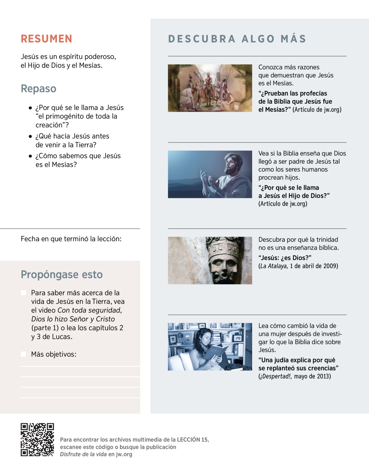 La Biblia destaca la importancia de aprender acerca de Jesús y de la misión que Dios le ha dado. Lean Juan 14:6 y 17:3, y hablen sobre lo siguiente:
