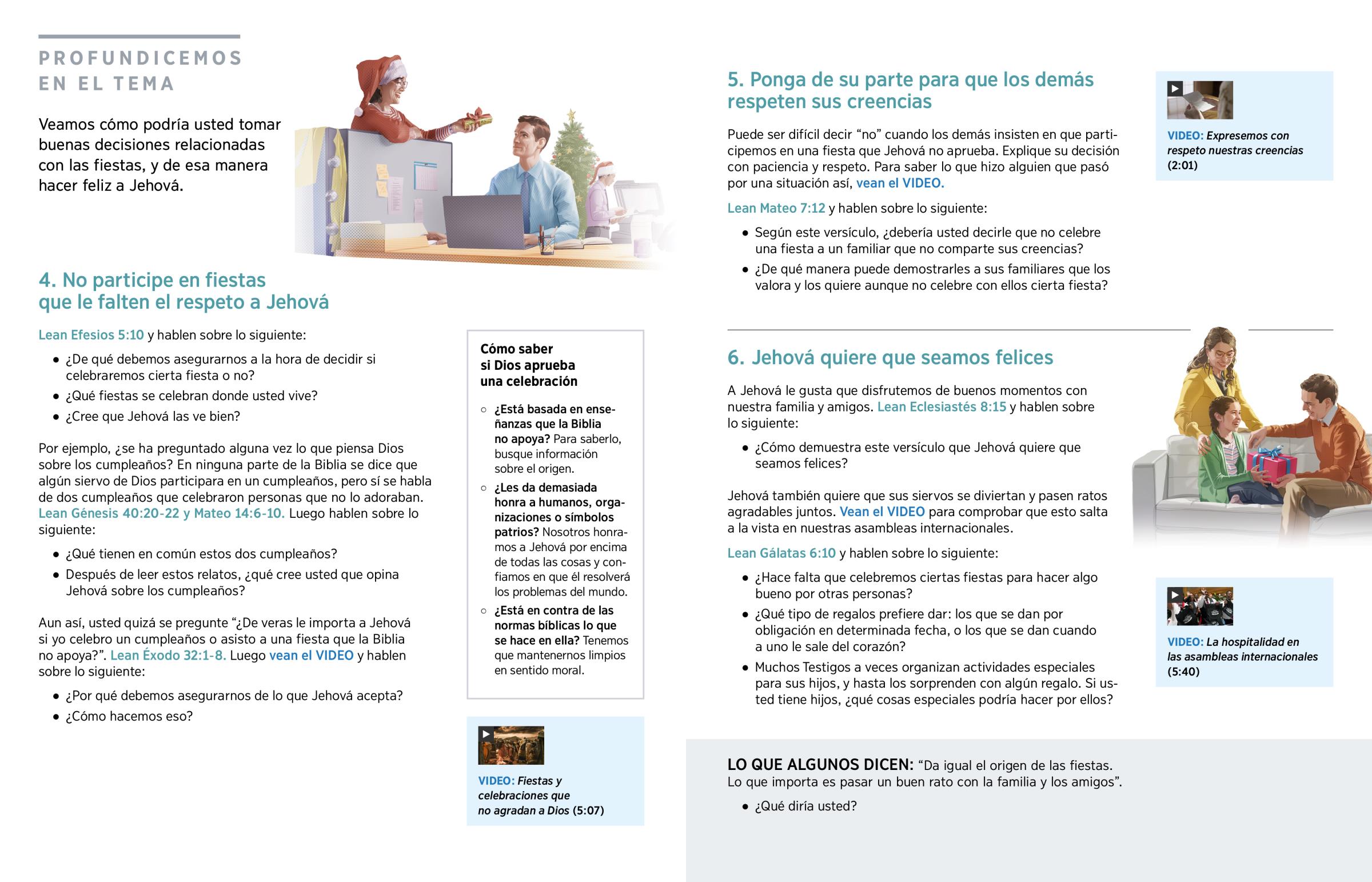 Aun así, usted quizá se pregunte “¿De veras le importa a Jehová si yo celebro un cumpleaños o asisto a una fiesta que la Biblia no apoya?”. Lean Éxodo 32:1-8. Luego vean el VIDEO y hablen sobre lo siguiente: