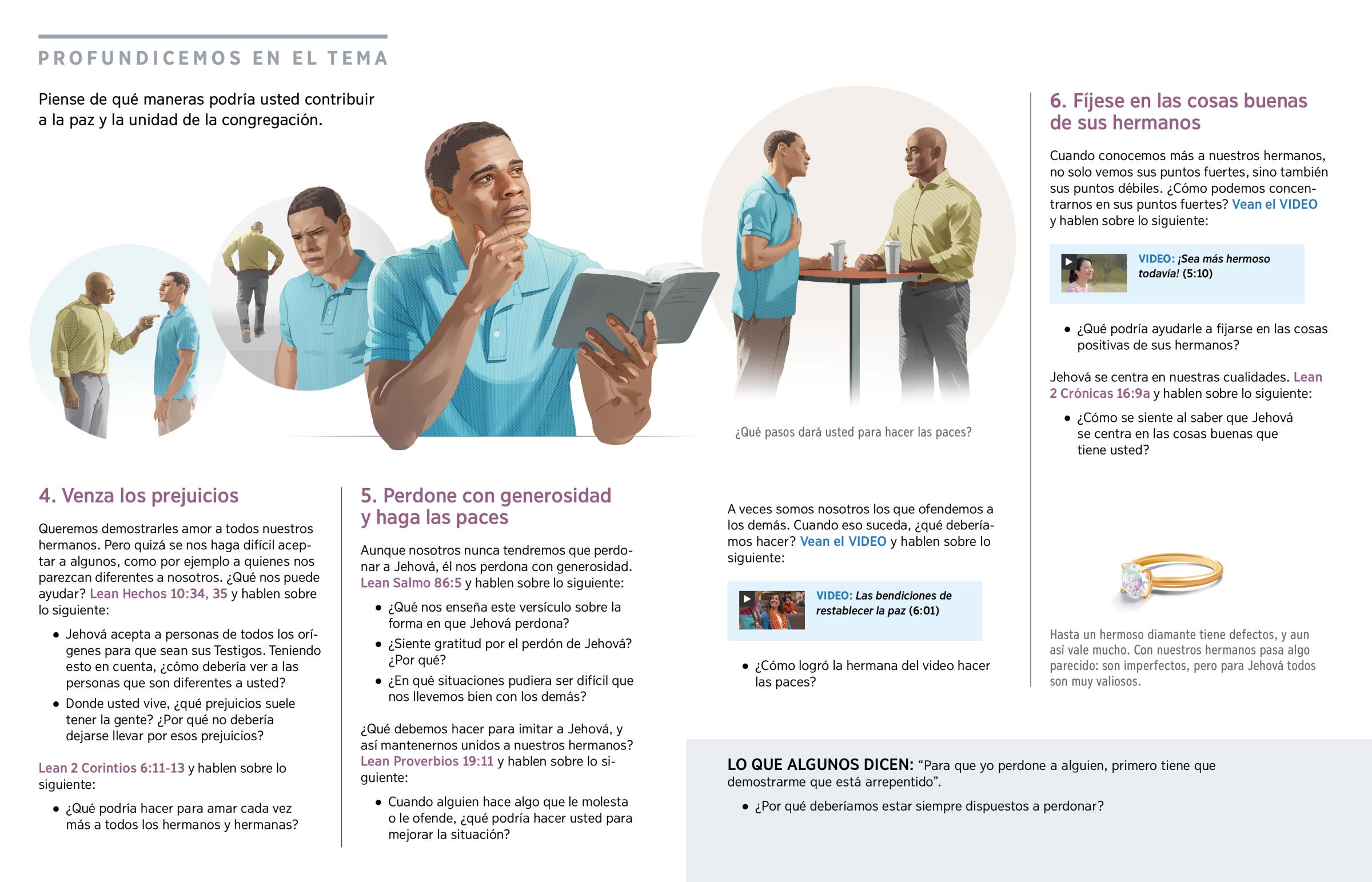 Piense de qué maneras podría usted contribuir a la paz y la unidad de la congregación.