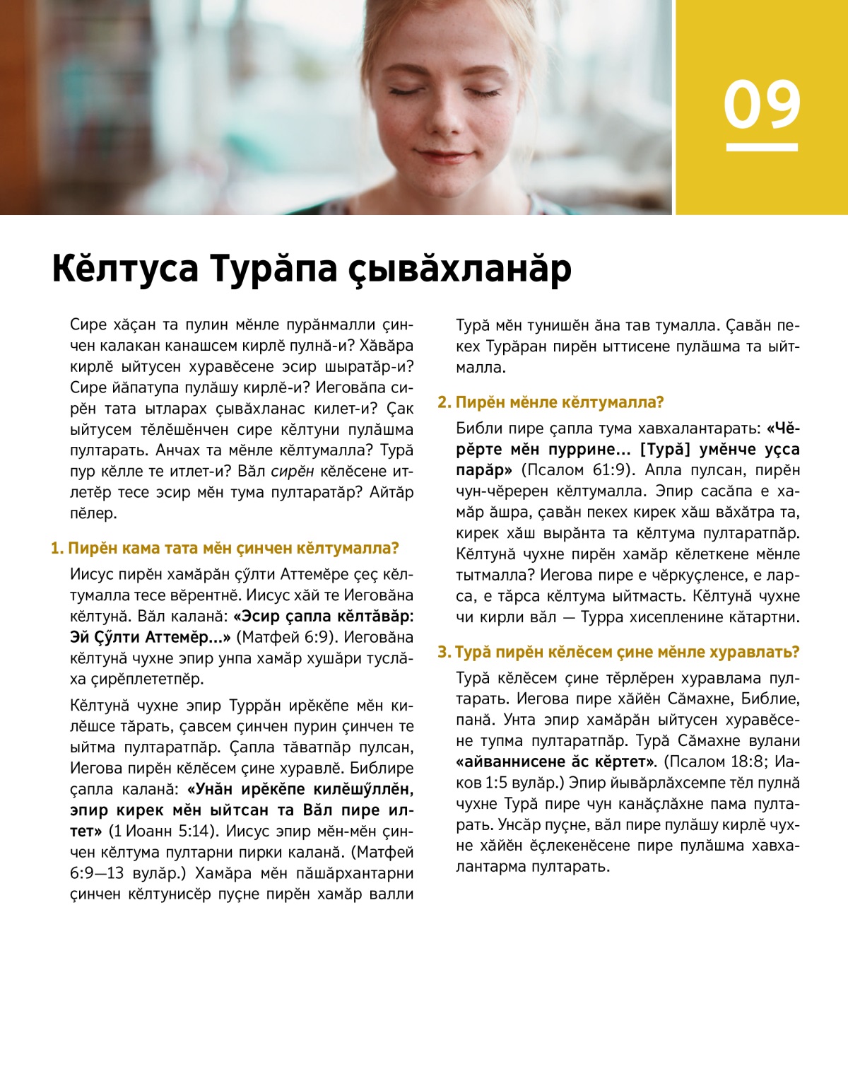 Сирӗн чун-чӗререн каланӑ кӗлӗсем Турра юрӑхлӑ пулччӑр тесен мӗнле кӗлтумаллине тата кӗлӗ сире мӗнле усӑ пама пултарнине пӑхса тухӑр.