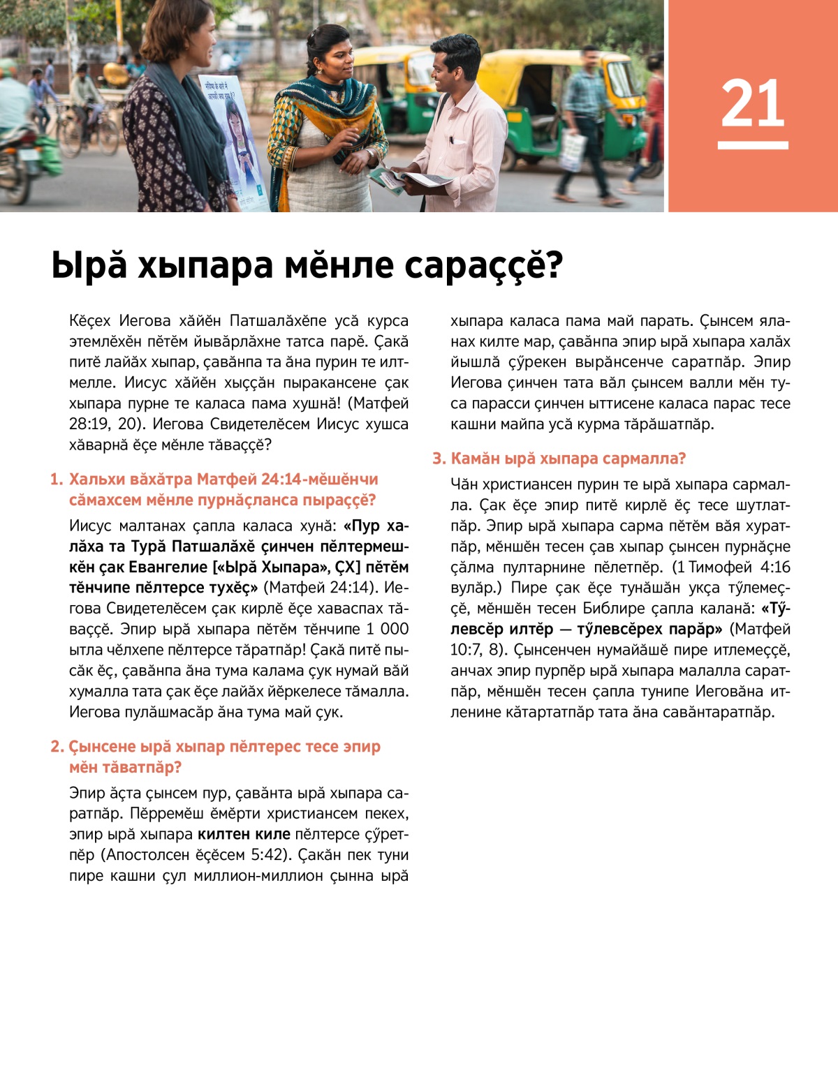КАМ ТА ПУЛИН ҪАПЛА ЫЙТМА ПУЛТАРАТЬ: «Мӗншӗн Иегова Свидетелӗсем ҫынсем патне киле пыраҫҫӗ?»