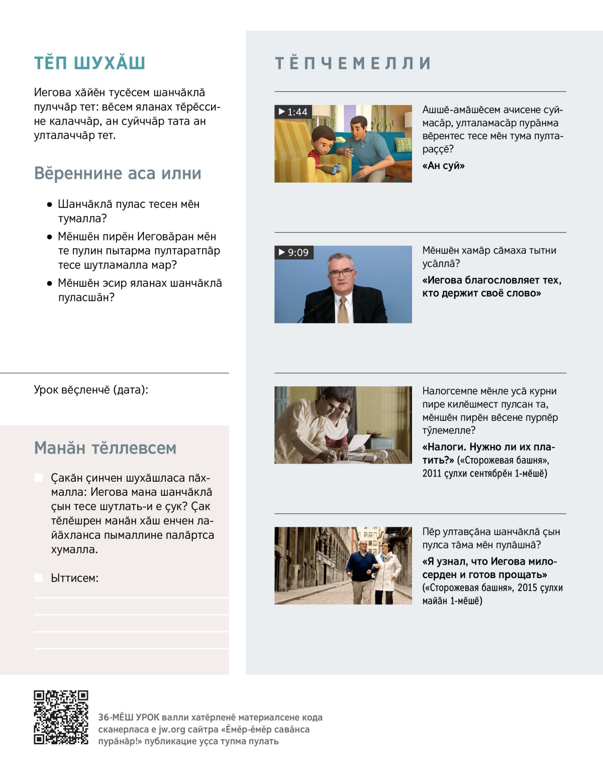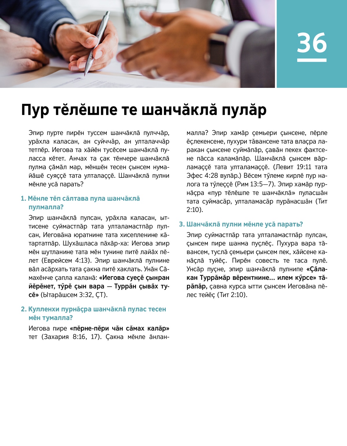 Иегова эпир шанчӑклӑ пулни, урӑхла каласан, суйманни тата улталаманни, ҫине мӗнле пӑхнине, шанчӑклӑ пулни хамӑра мӗнле усӑ панине пӗлӗр тата тӗрлӗ лару-тӑрура мӗнле шанчӑклӑ пулмаллине пӑхса тухӑр.