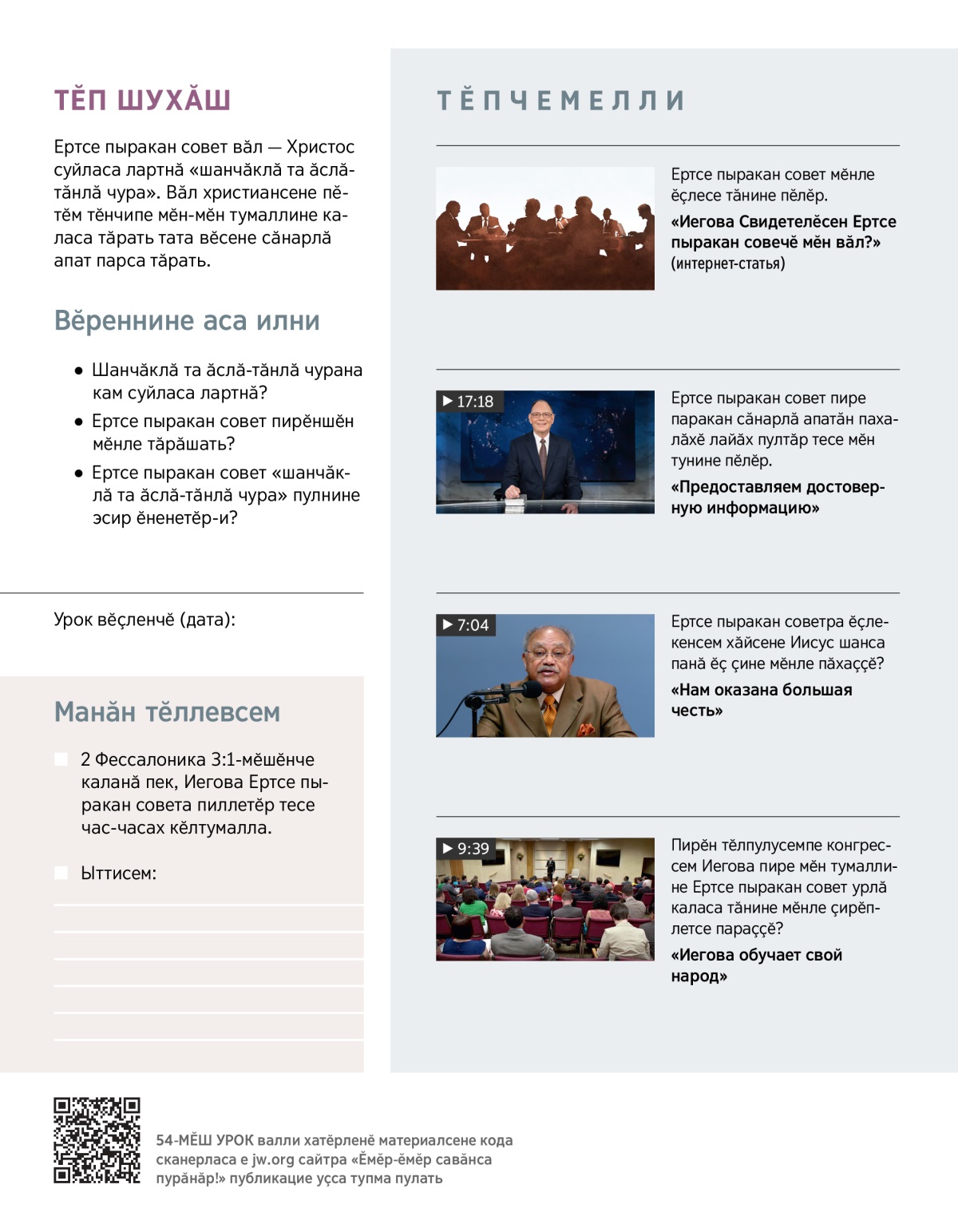 Иисус ертсе пынипе Ертсе пыракан совет Иегова Свидетелӗсен ӗҫӗ-хӗлне йӗркелесе тӑрать. Пӗрремӗш ӗмӗрти христиансем хушшинче те ҫавӑн пек йӗрке пулнӑ. ВИДЕО пӑхӑр.