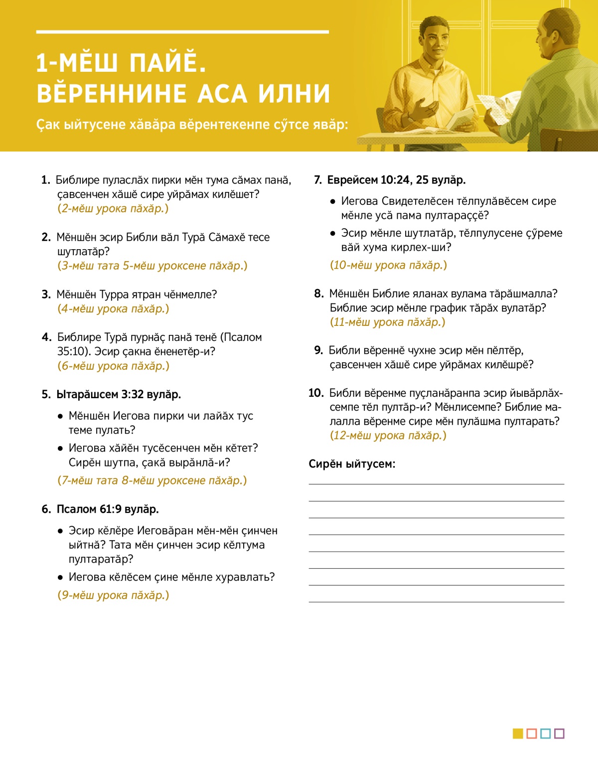Эсир кӗлӗре Иеговӑран мӗн-мӗн ҫинчен ыйтнӑ? Тата мӗн ҫинчен эсир кӗлтума пултаратӑр?