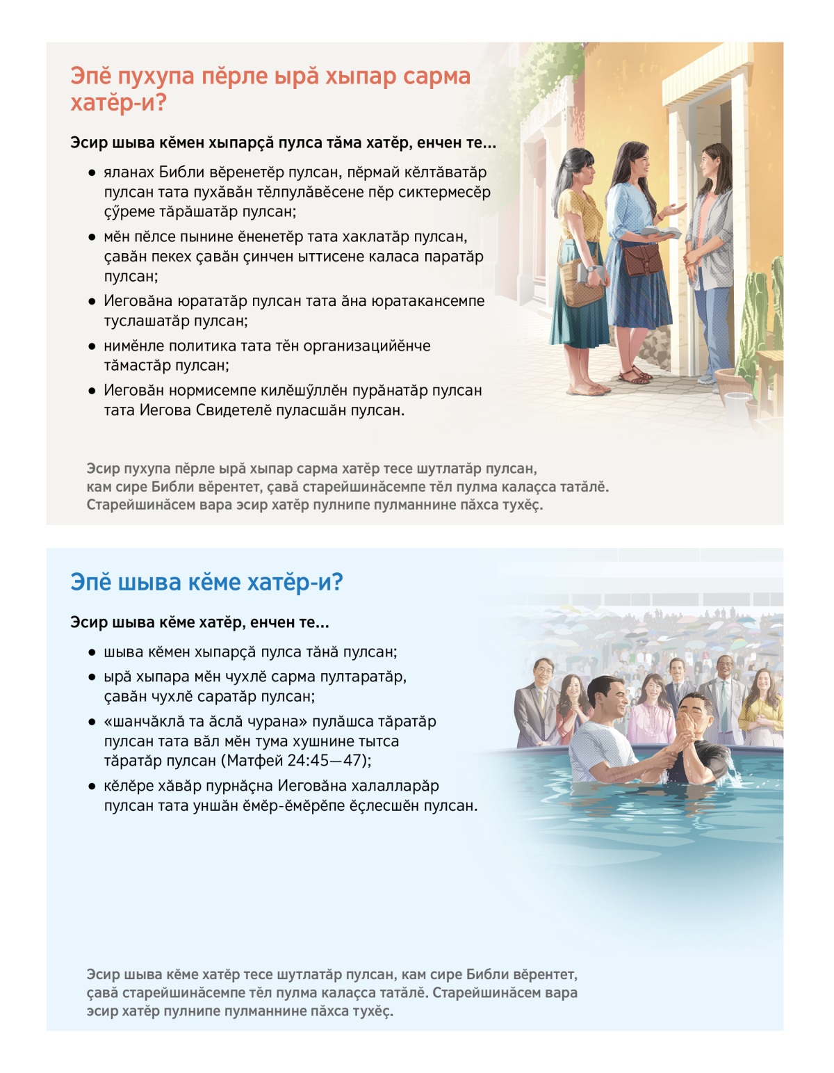 Иеговӑн нормисемпе килӗшӳллӗн пурӑнатӑр пулсан тата Иегова Свидетелӗ пуласшӑн пулсан.