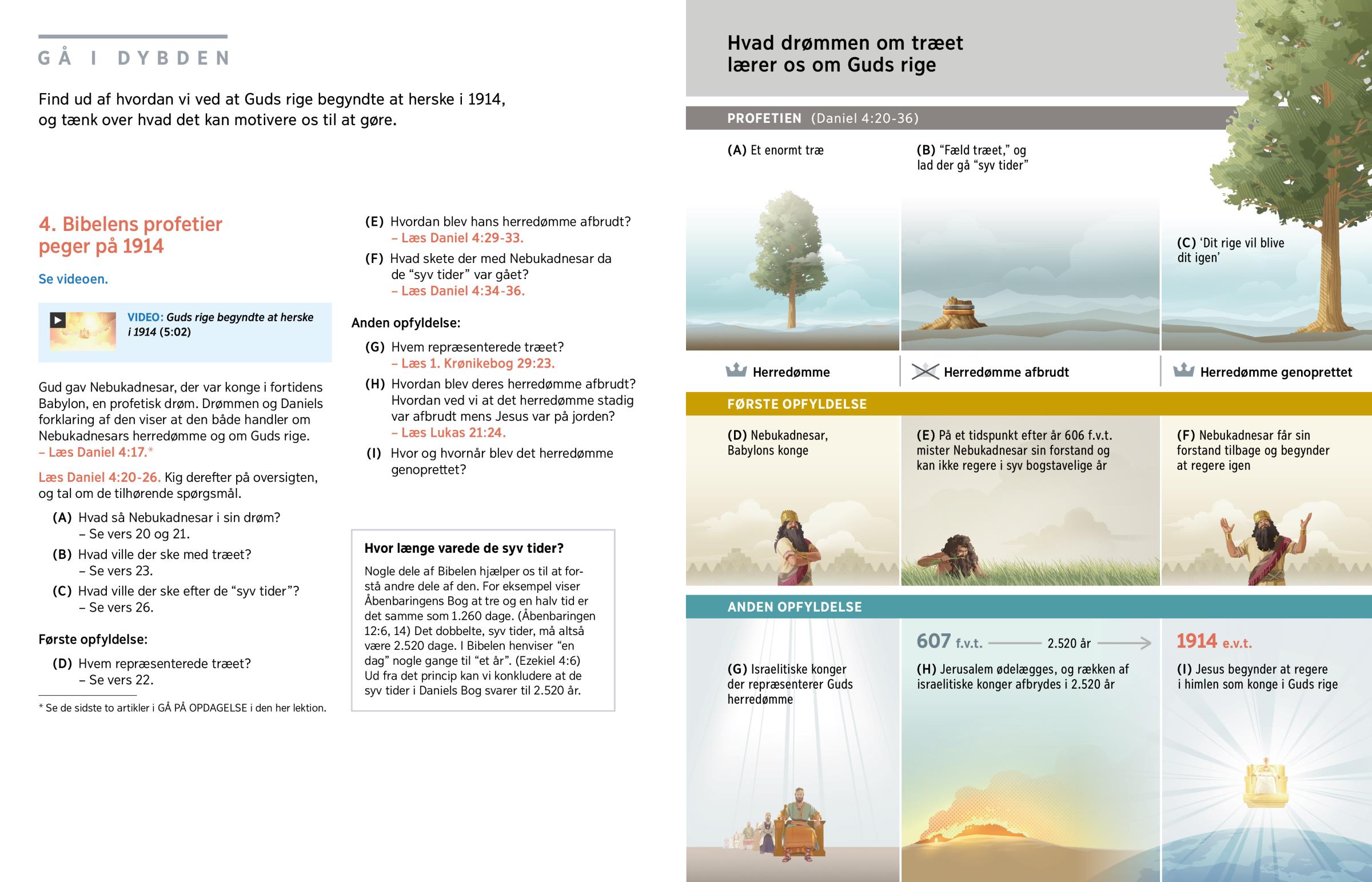 Guds rige begyndte at herske i himlen i 1914. Det var også det år hvor de sidste dage for menneskers styre begyndte. Hvordan ved vi det? Det vil vi få svar på i den her lektion ved at gennemgå nogle spændende profetier fra Bibelen.
