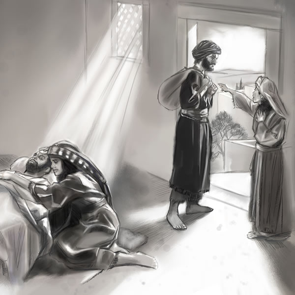 Jesus ved at Lazarus er død af sin sygdom. Derfor siger han til sine apostle: „Lad os gå til Judæa igen.“ Men de protesterer: „For nylig søgte judæerne at stene dig, og så går du igen dertil?“ Jesus forklarer: „Lazarus, vor ven, er gået til hvile, men jeg tager hen for at vække ham af søvnen.“
