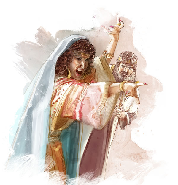 Kongen af Israel hed Akab. Han tjente ikke Jehova. Hans onde kone, Jesabel, tilbad Ba’al, og det gjorde Akab også. Hun og Akab prøvede at finde dem der tjente Jehova, især Elias, for at slå dem ihjel. Det var derfor Elias flygtede. Han gik næsten 500 kilometer ud i ørkenen til Horeb, et sted der i Bibelen også kaldes Sinaj. Det var dér Jehova flere hundrede år før Elias’ tid havde givet sit folk De Ti Bud og resten af sin lov. Elias skjulte sig i en hule ved Horeb, og han var helt alene. Synes du Elias havde grund til at være bange? —