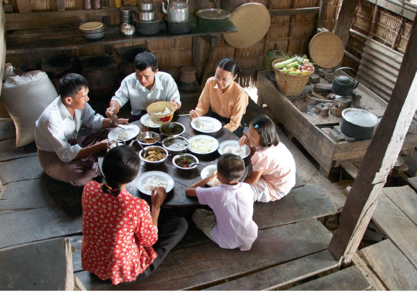 Folk i Myanmar er venlige, hensynsfulde og nysgerrige. Landet er befolket af otte store etniske grupper og mindst 127 mindre grupper. Hver gruppe har sit særegne sprog og sin karakteristiske klædedragt, mad og kultur. Størstedelen af befolkningen bor på en bred, centralt beliggende slette der får tilført næring fra den mægtige flod Ayeyarwady (Irrawaddy). Denne over 2000 kilometer lange flod bugter sig fra det bidende kolde Himalaya til det lunkne Andamanhav. Derforuden bor der millioner i det store deltaområde og i det bjergrige højland der grænser op til Bangladesh, Indien, Kina, Laos og Thailand.