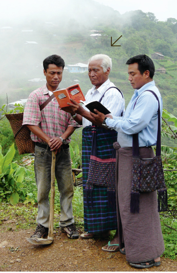 I hele dette forskelligartede land besøger ihærdige rejsende tilsynsmænd deres brødre og søstre for at opmuntre dem. Lad os følges med en af dem når han besøger menigheder i de fjerntliggende Nagabjerge. Kredstilsynsmanden, Myint Lwin, rejser sammen med sin kone, Lal Lun Mawmi. Han skriver: „Midt på formiddagen forlader min kone og jeg Kalemyo på ladet af en propfyldt pickup. Vi får anbragt vores ben mellem stabler af kasser med varer og grøntsager. Omkring os klamrer andre passagerer sig til bagklappen eller sidder på taget. Pickuppen bumper hen over hullerne i vejen, og skyer af støv hvirvler omkring os. Vi bruger masker for ikke at blive kvalt i støv.