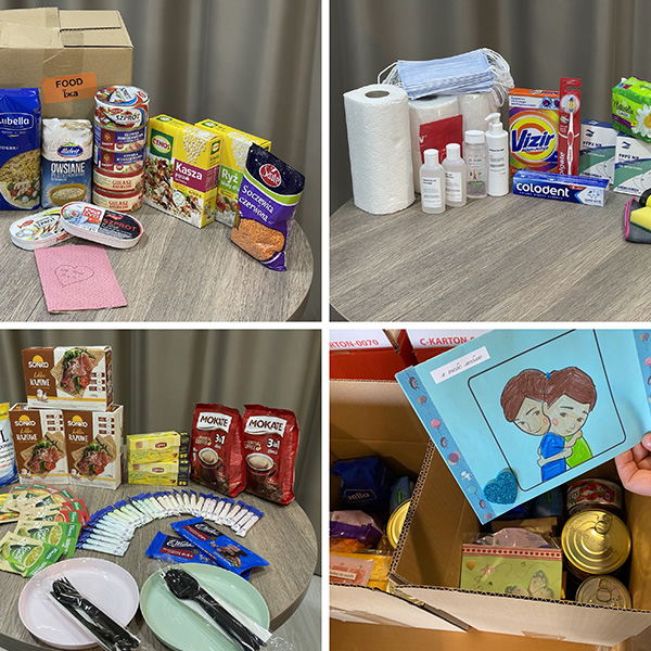 I hjælpepakkerne var der blandt andet madvarer, produkter til personlig pleje og søde opmuntringskort