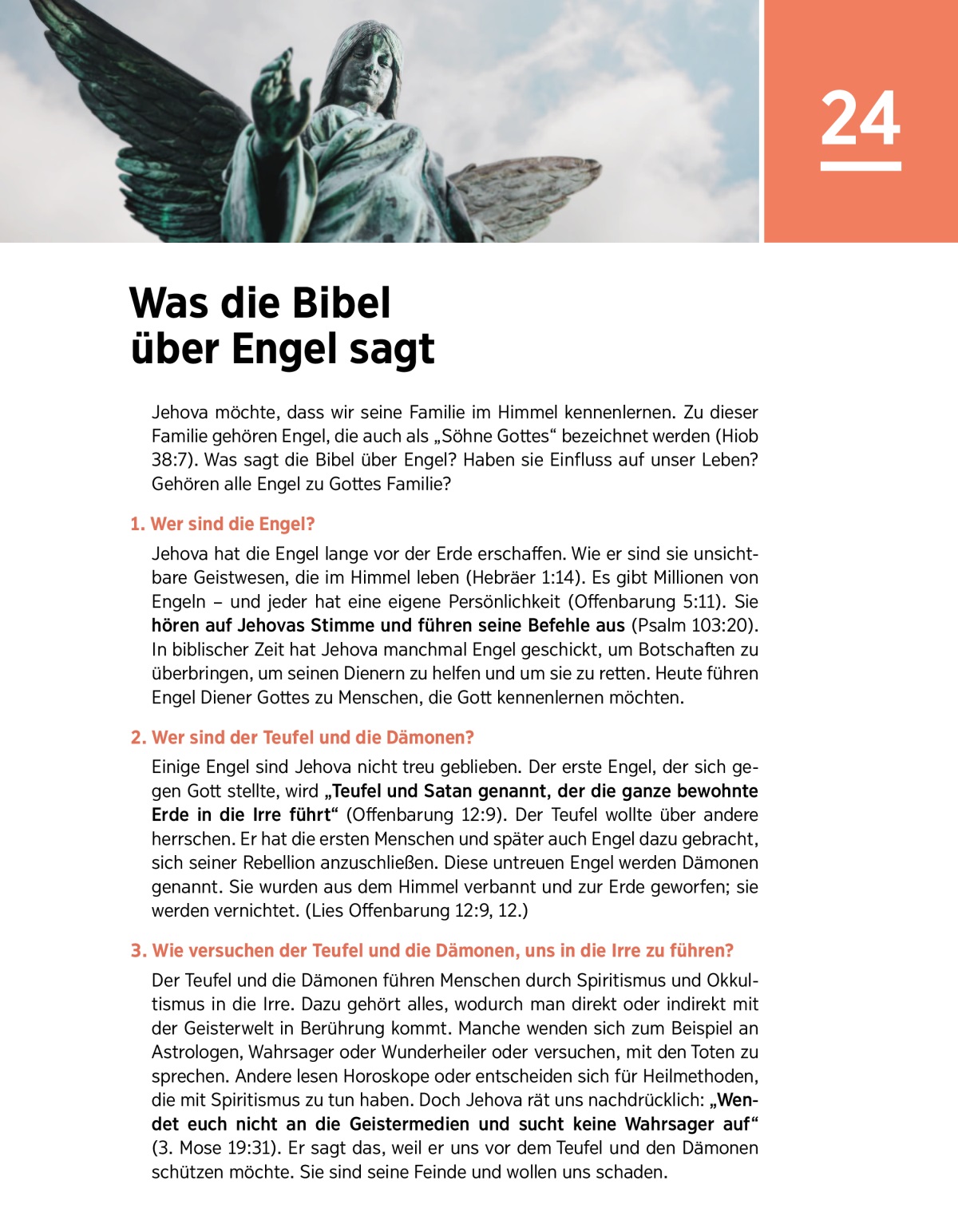 Treue Engel helfen uns. Der Teufel und die Dämonen sind Jehovas Feinde. Sie versuchen, Menschen durch Spiritismus und Okkultismus zu beeinflussen.