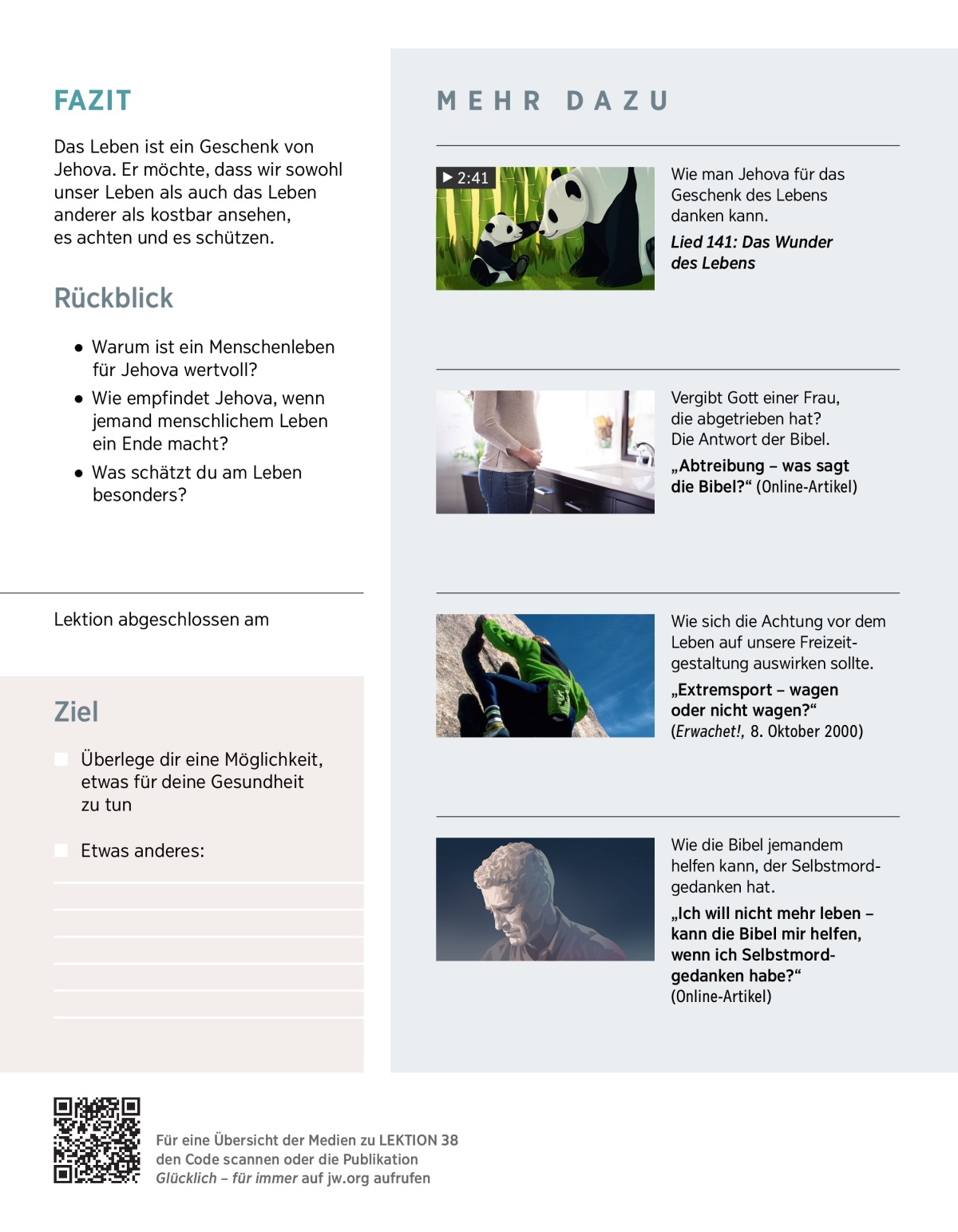 b Eine Frau, die in der Vergangenheit abgetrieben hat, macht sich vielleicht schwere Vorwürfe. Doch Jehova kann ihr vergeben. Siehe dazu den Artikel „Abtreibung – was sagt die Bibel?“ am Ende der Lektion unter „Mehr dazu“.