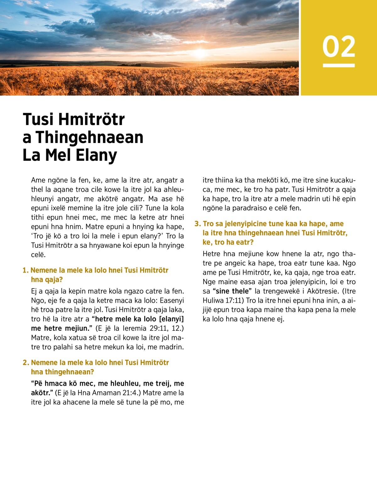 3. Tro sa jelenyipicine tune kaa ka hape, ame la itre hna thingehnaean hnei Tusi Hmitrötr, ke, tro ha eatr?