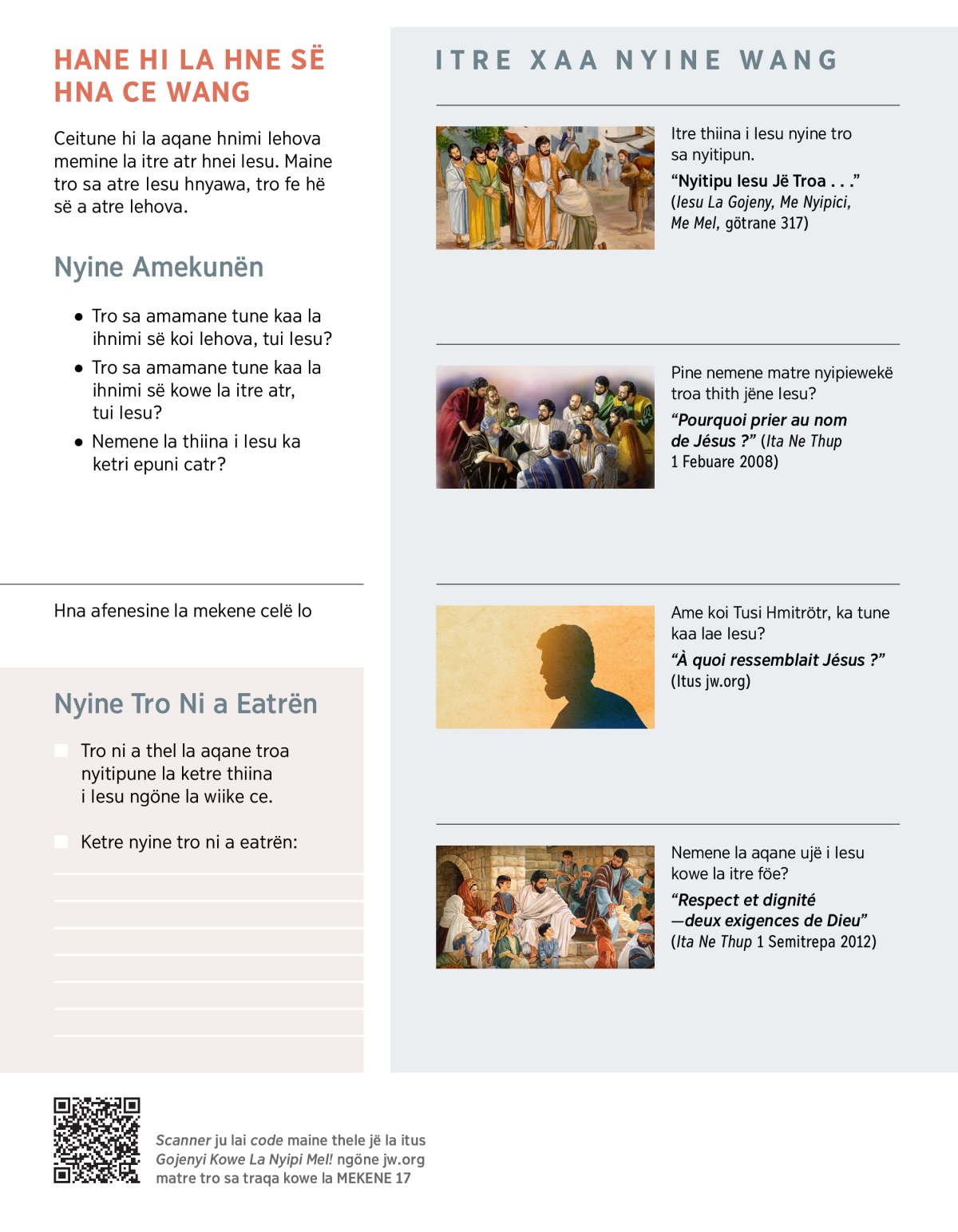 Ceitune hi la aqane hnimi Iehova memine la itre atr hnei Iesu. Maine tro sa atre Iesu hnyawa, tro fe hë së a atre Iehova.