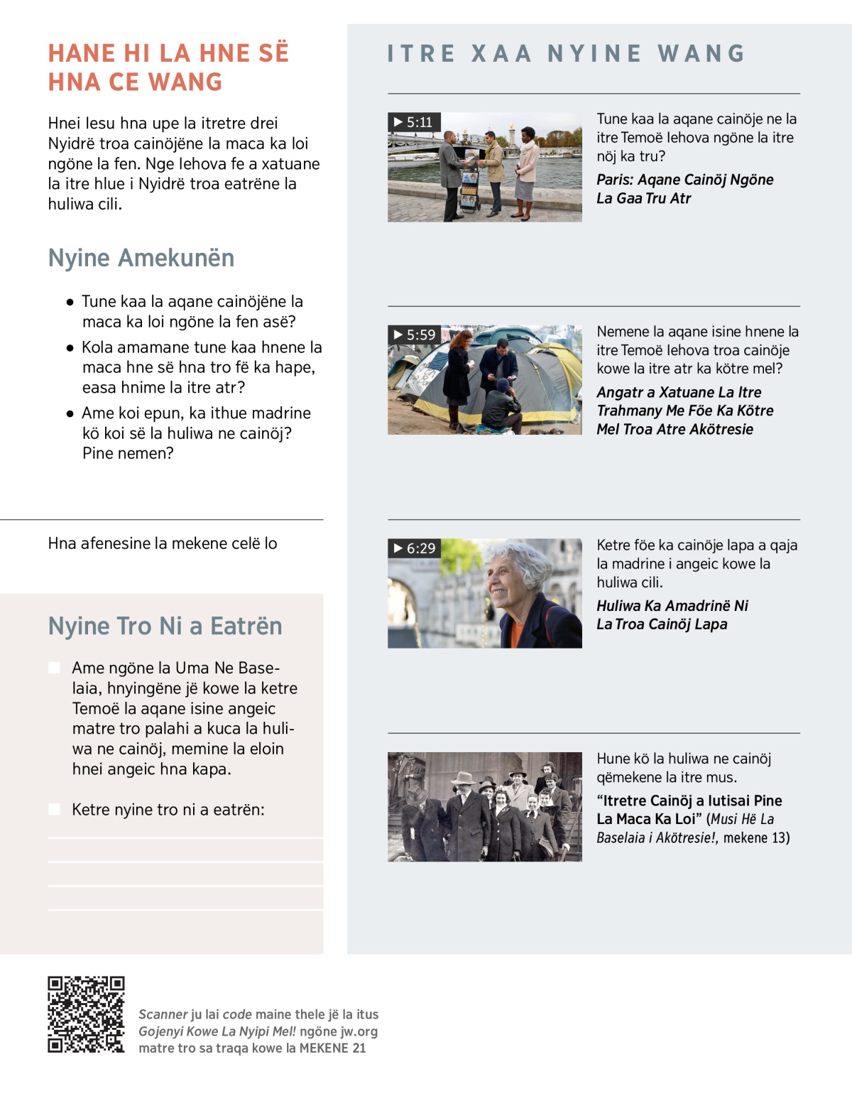 Kola isine hnene la itre Temoë Iehova troa cainöjëne la maca ka loi kowe la fen asë. Goeëne jë la VIDEO, nge ce ithanatane jë cahu hnying: