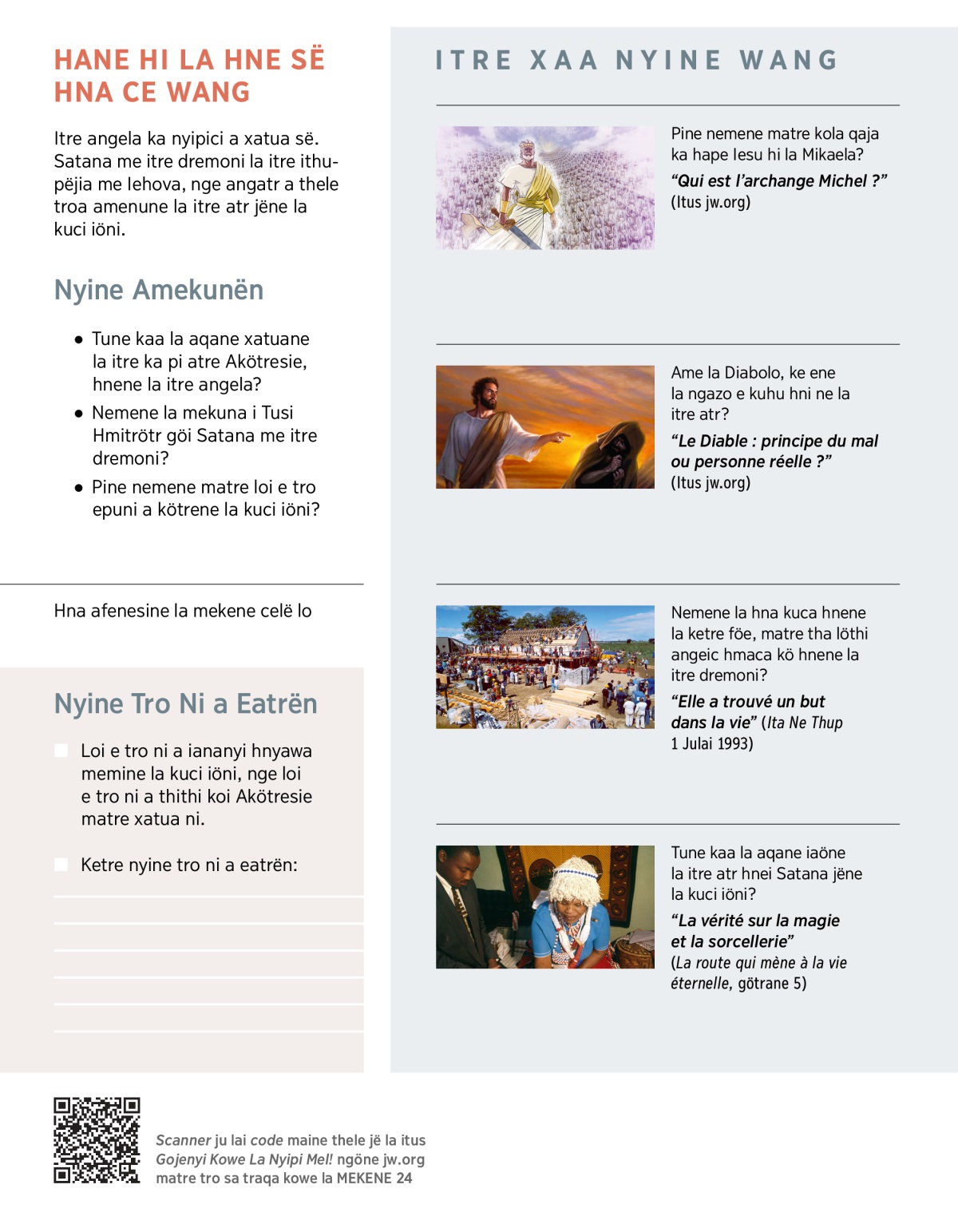 Satana me itre dremoni a amenune la ka alanyimu jëne la kuci iöni. Ame la kuci iöni, ke kola qejepengöne la itre atr ka ithanata memine la itre dremoni. Tune la itre atr ka wai horoscope, me itre guérisseur. Ame la itre xan, kola kuca la itre drösinöe hna puj, maine ithanata pena memine la itre atr ka mec. Ngo hane hi la hnei Iehova hna qaja koi së: “The tro kö nyipunie a jea kowe la ite tene u ne ta, me thele thene la ite perofeta thoi.” (Levitiko 19:31) Nyidrëti a qaja lai matre troa thupë së, pine laka Satana me itre dremoni a thele troa akötrë së, ke itre ithupëjia angatr me Akötresie.