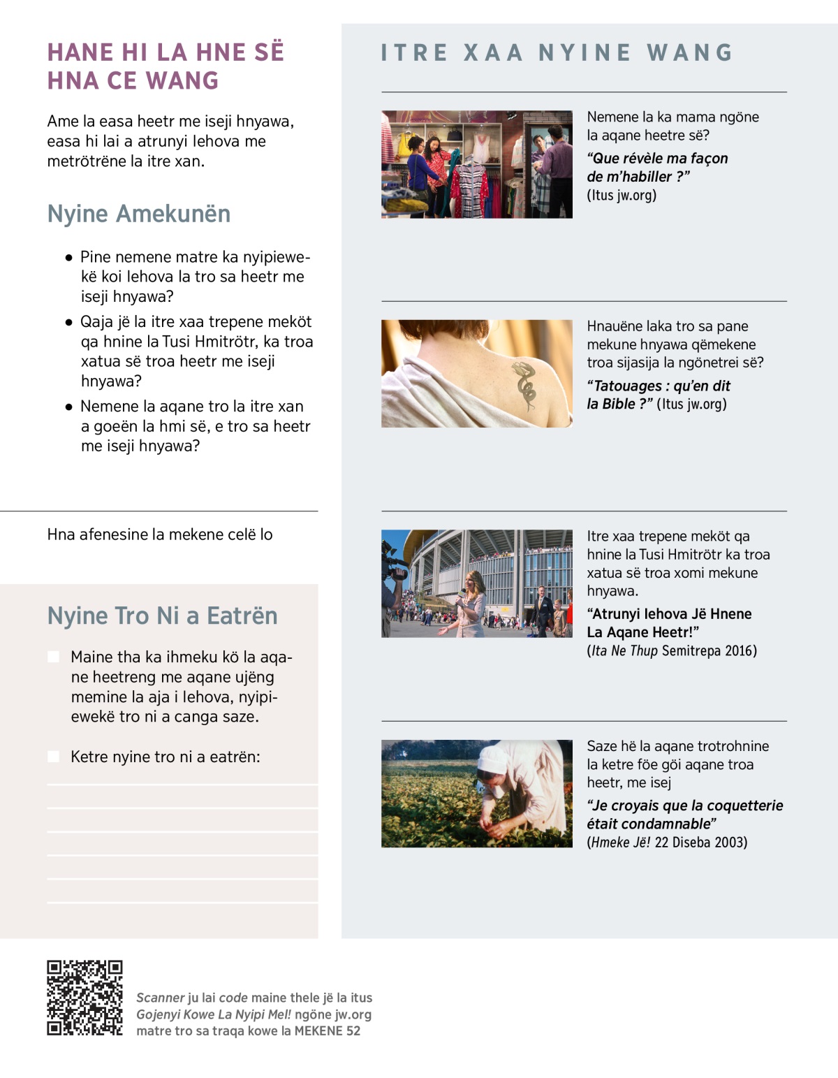 Tha ka nyipiewekë kö la itre iheetre ka tru thupen. Loi e tro pe a heetrë ka porop, nge ka ihmeku memine la huliwa hne së hna kuca. E jë la 1 Korinito 10:24 me 1 Timoteo 2:9, 10. E thupen, qaja jë la kepin matre tha easë kö a amë la itre iheetr . . .