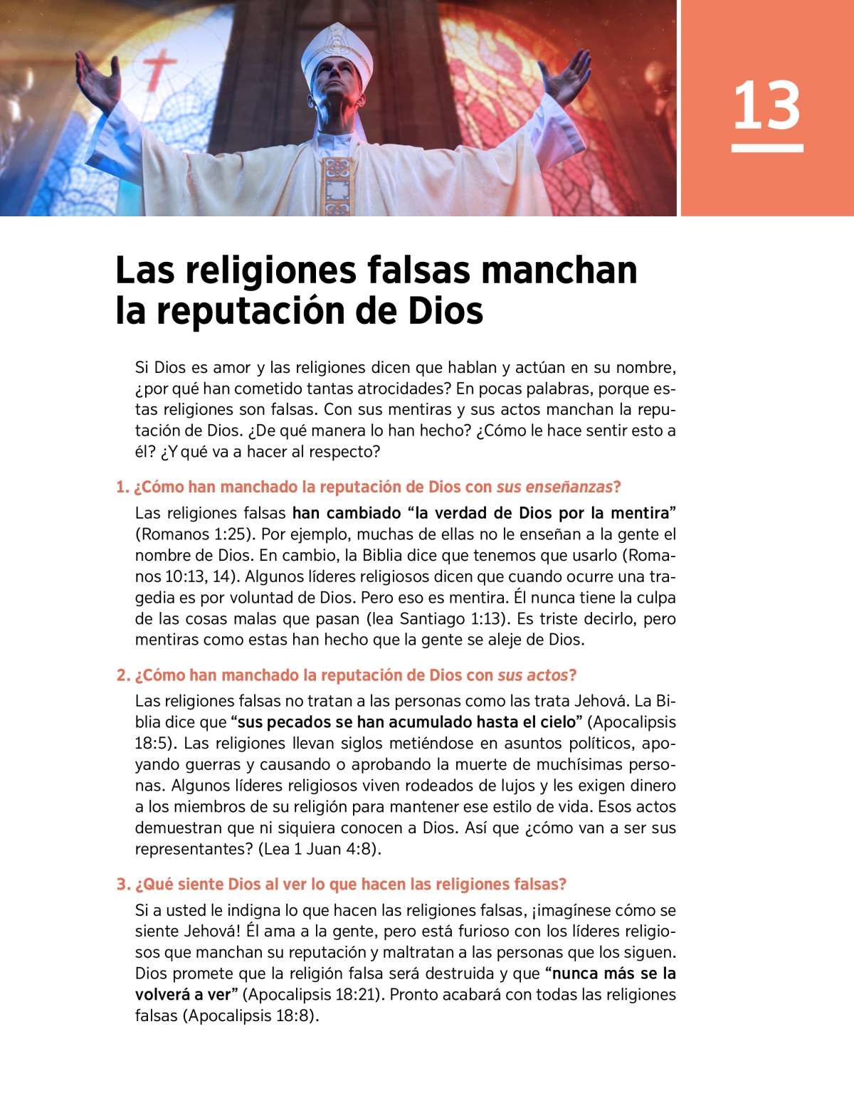 Veamos con más detalle qué piensa Jehová de las religiones falsas. También veamos más información sobre lo que ellas han hecho. Y, por último, analicemos por qué sus actos no deberían hacer que usted deje de aprender más de Jehová.