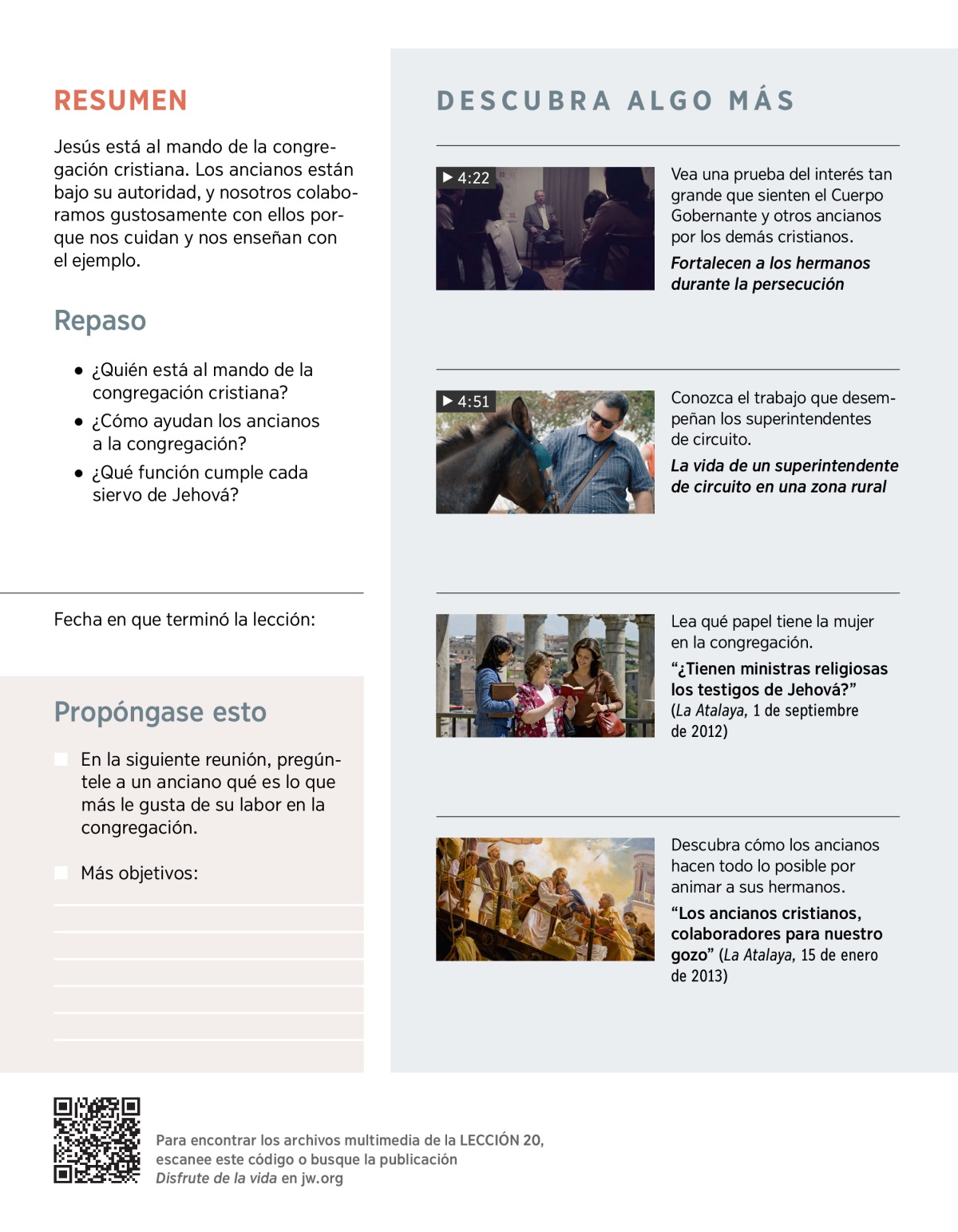 La Biblia nos da razones de peso para colaborar con los ancianos. Lean Hebreos 13:17 y hablen sobre lo siguiente: