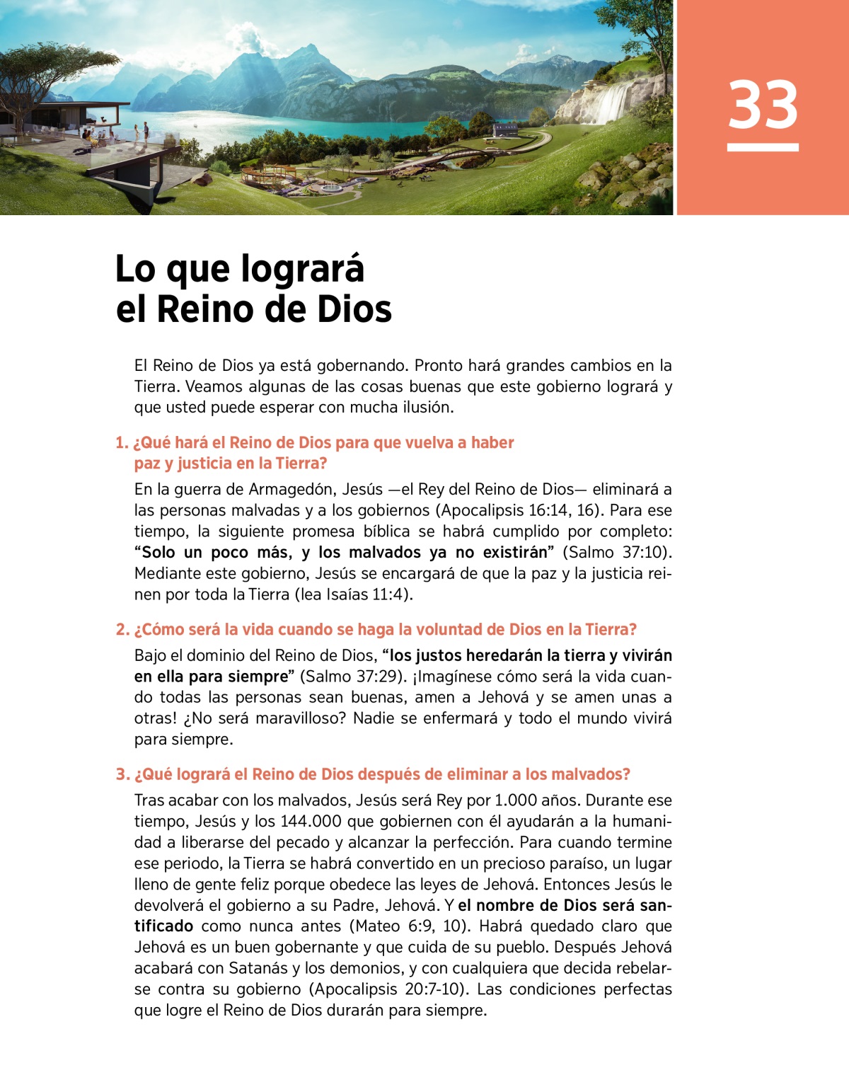 1. ¿Qué hará el Reino de Dios para que vuelva a haber paz y justicia en la Tierra?