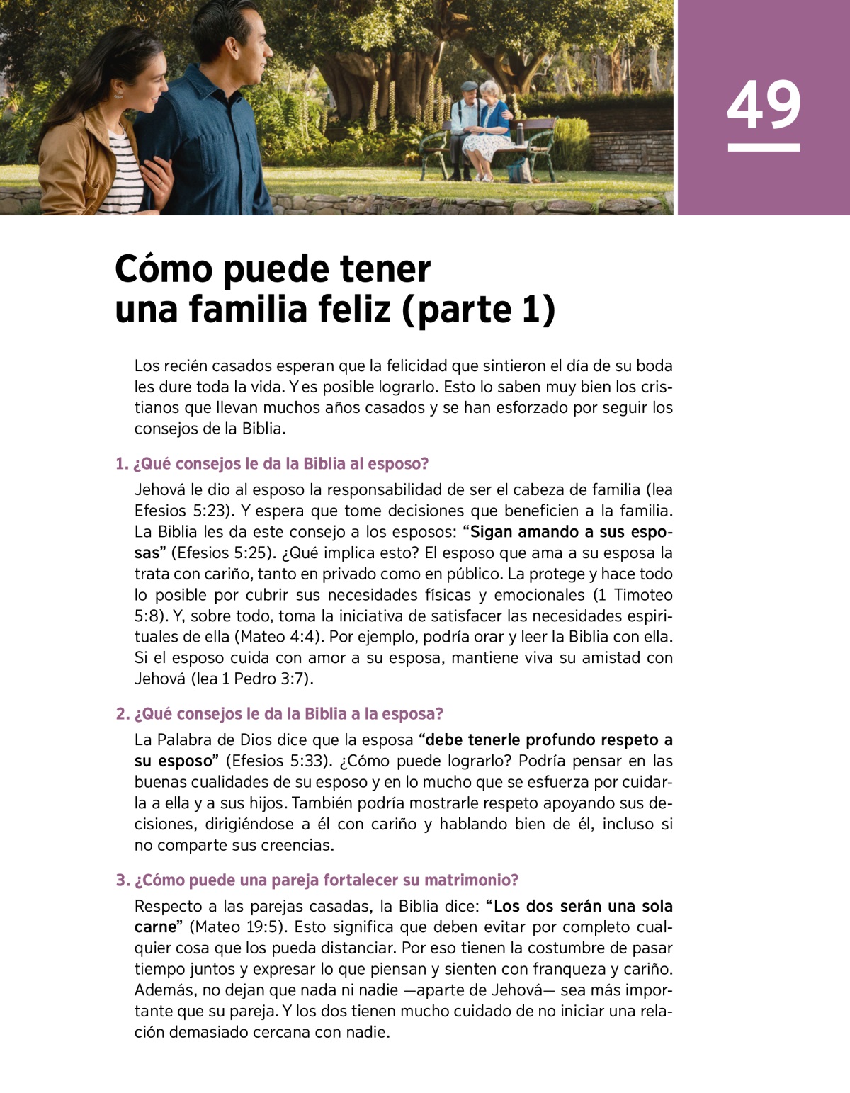 El esposo y la esposa pueden tomar buenas decisiones juntos. Claro, ella no siempre estará de acuerdo con él. En ese caso, la esposa podría decir lo que piensa con calma y respeto. Pero debe recordar que Jehová le ha dado al esposo la responsabilidad de decidir lo que es mejor para la familia. Y se espera que ella haga todo lo posible por apoyar su decisión. De este modo contribuirá a la felicidad de su hogar. Lean 1 Pedro 3:3-5 y hablen sobre lo siguiente:
