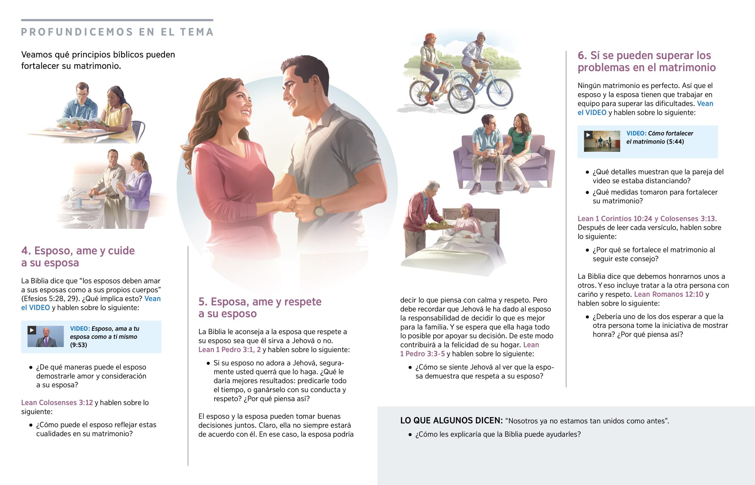 Ningún matrimonio es perfecto. Así que el esposo y la esposa tienen que trabajar en equipo para superar las dificultades. Vean el VIDEO y hablen sobre lo siguiente: