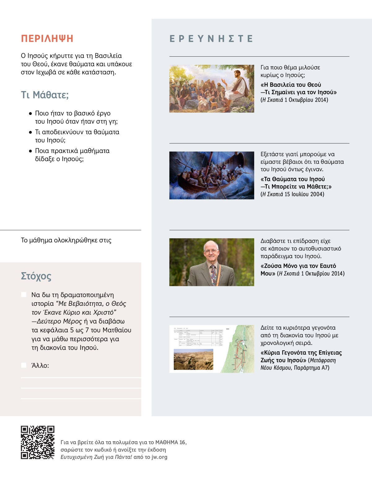 Πολλοί φαντάζονται τον Ιησού είτε ως αβοήθητο μωρό είτε ως σοφό προφήτη είτε ως ετοιμοθάνατο άνθρωπο. Μπορούμε άραγε να μάθουμε περισσότερα για αυτόν αναλύοντας τη ζωή του στη γη; Σε αυτό το μάθημα θα εξετάσουμε μερικά από τα πιο σημαντικά πράγματα που έκανε ο Ιησούς και γιατί σας αφορούν.