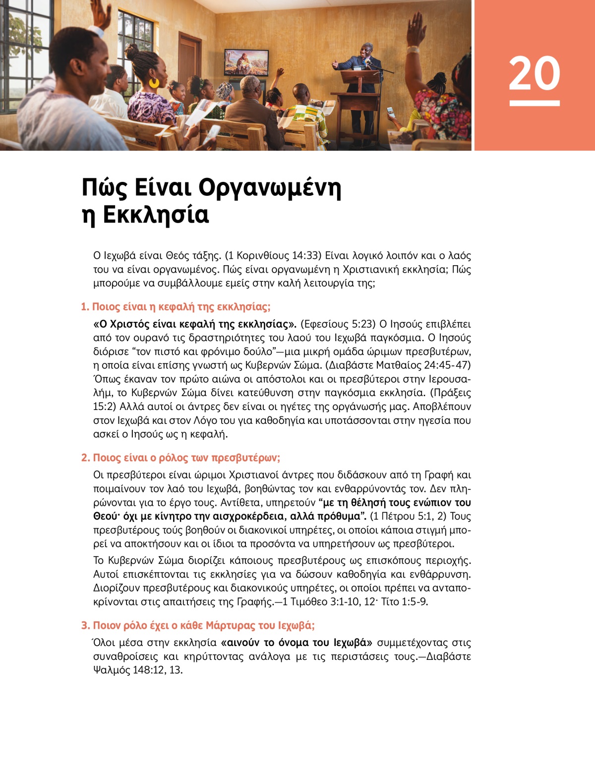 Ο Ιεχωβά είναι Θεός τάξης. (1 Κορινθίους 14:33) Είναι λογικό λοιπόν και ο λαός του να είναι οργανωμένος. Πώς είναι οργανωμένη η Χριστιανική εκκλησία; Πώς μπορούμε να συμβάλλουμε εμείς στην καλή λειτουργία της;