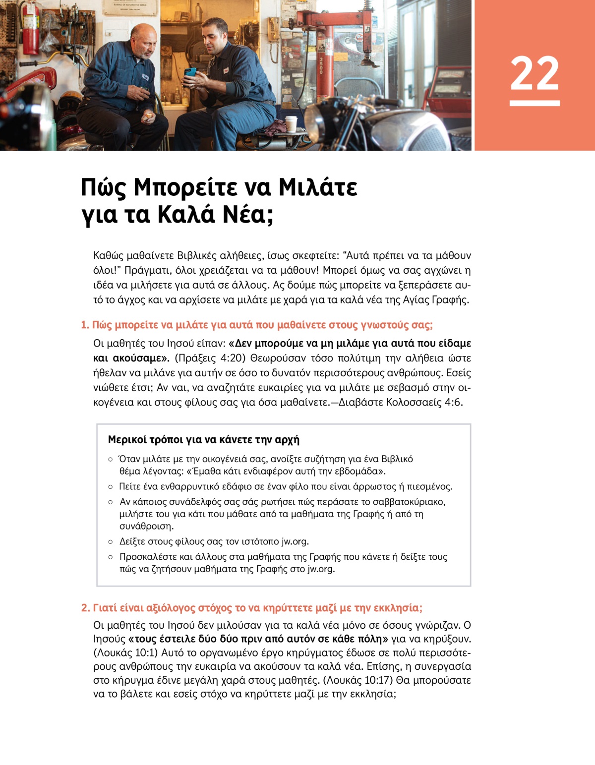 Καθώς μαθαίνετε Βιβλικές αλήθειες, ίσως σκεφτείτε: “Αυτά πρέπει να τα μάθουν όλοι!” Πράγματι, όλοι χρειάζεται να τα μάθουν! Μπορεί όμως να σας αγχώνει η ιδέα να μιλήσετε για αυτά σε άλλους. Ας δούμε πώς μπορείτε να ξεπεράσετε αυτό το άγχος και να αρχίσετε να μιλάτε με χαρά για τα καλά νέα της Αγίας Γραφής.
