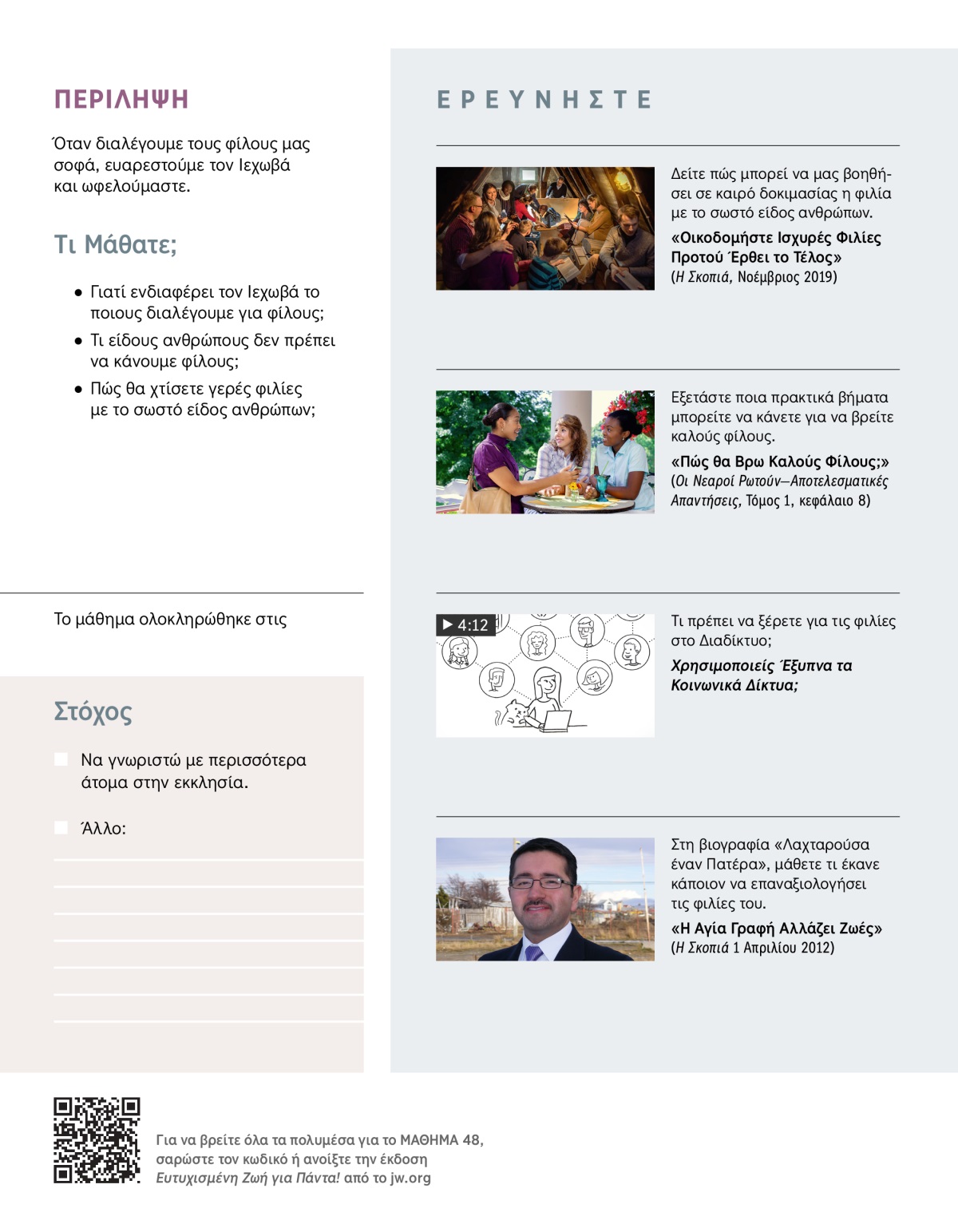 «Οικοδομήστε Ισχυρές Φιλίες Προτού Έρθει το Τέλος» (Η Σκοπιά, Νοέμβριος 2019)