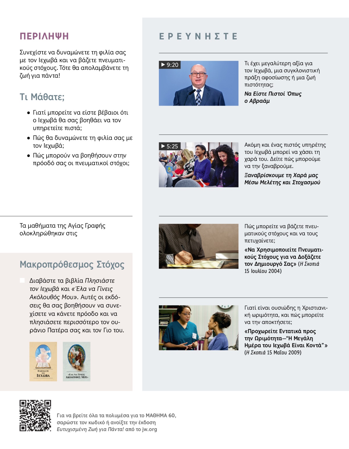 Συνεχίστε να δυναμώνετε τη φιλία σας με τον Ιεχωβά και να βάζετε πνευματικούς στόχους. Τότε θα απολαμβάνετε τη ζωή για πάντα!