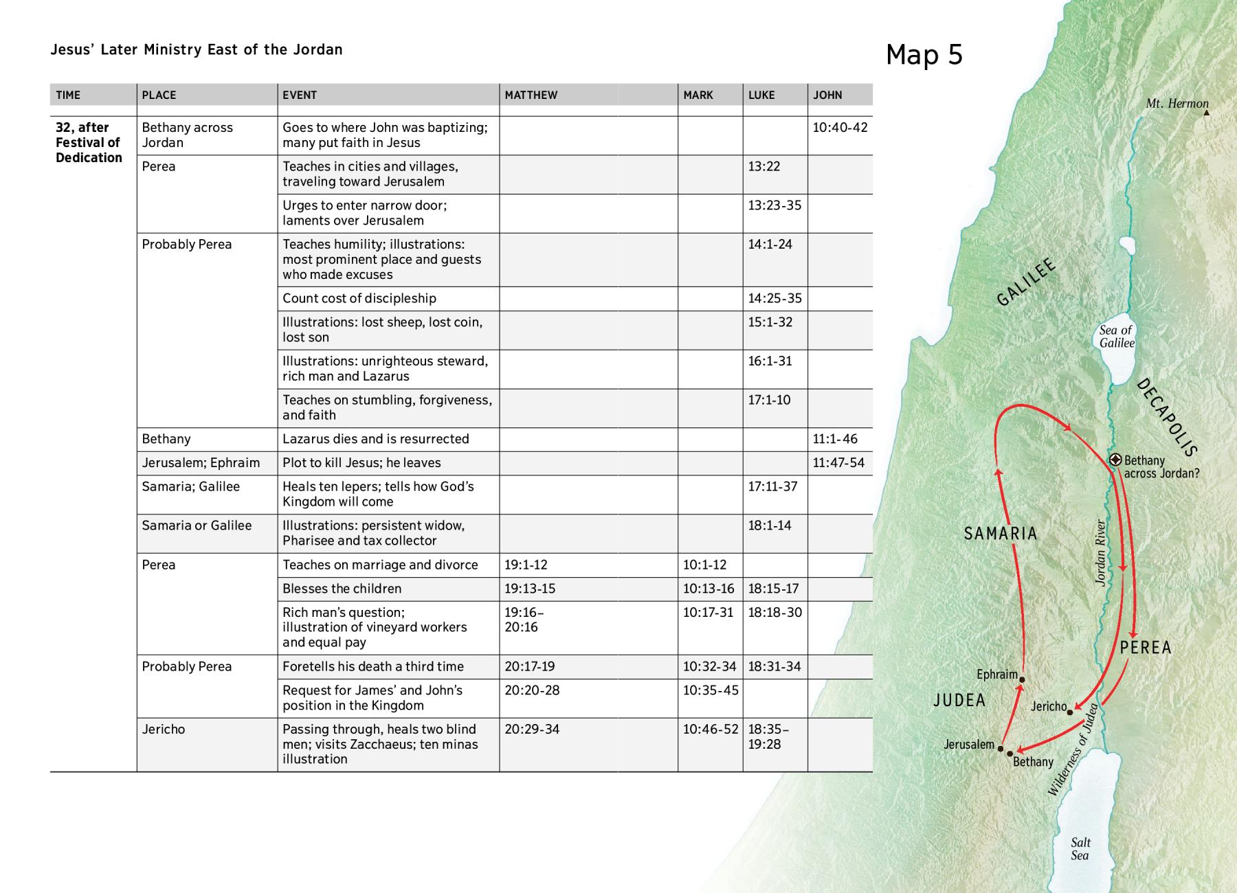 Main Events of Jesus’ Earthly Life—Jesus’ Later Ministry East of the Jordan