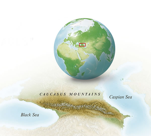 Straddling the Caucasus Mountains between the Black and Caspian seas, this region’s location is at a crossroads of continents and civilizations, which has given it a long history and rich culture. Its people are known for their respect for older ones, their love of dance, and their warm hospitality. But many visitors find the most fascinating aspect of the Caucasus to be its wide variety of ethnic groups and languages—more languages, in fact, than are spoken in any other European region of its size.