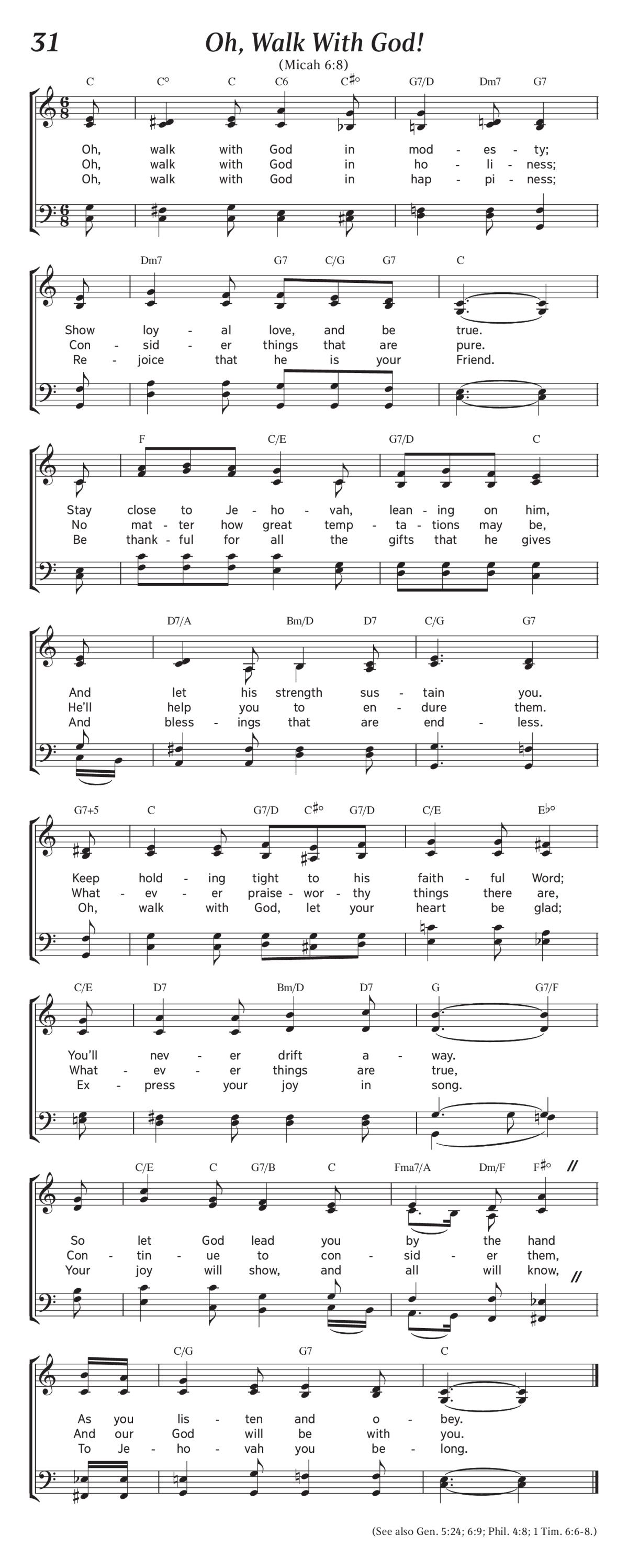 1. Oh, walk with God in modesty;